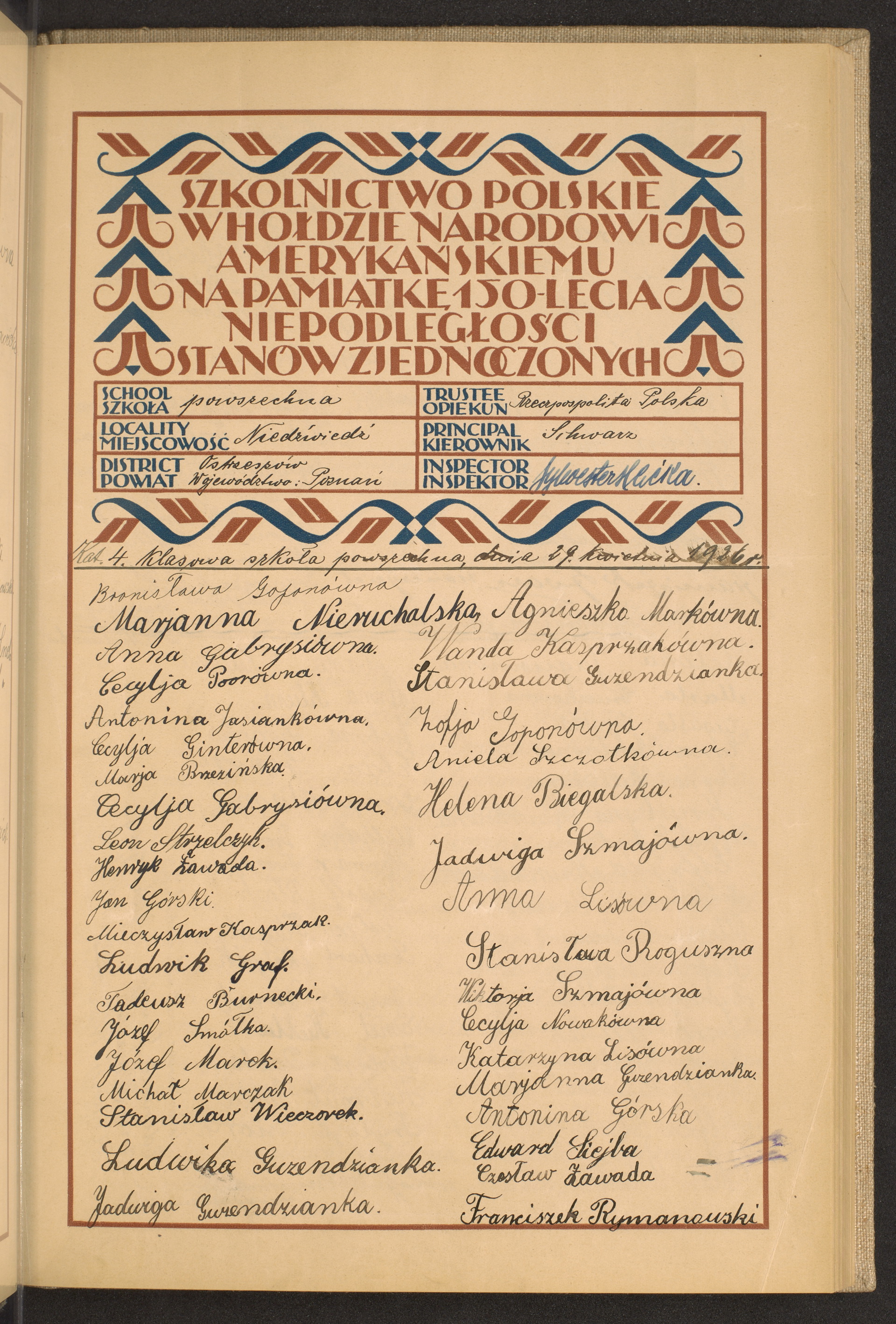 szkoły powszechne i gimnazja; powiaty Ostrów Mazowiecka - Oszmiana