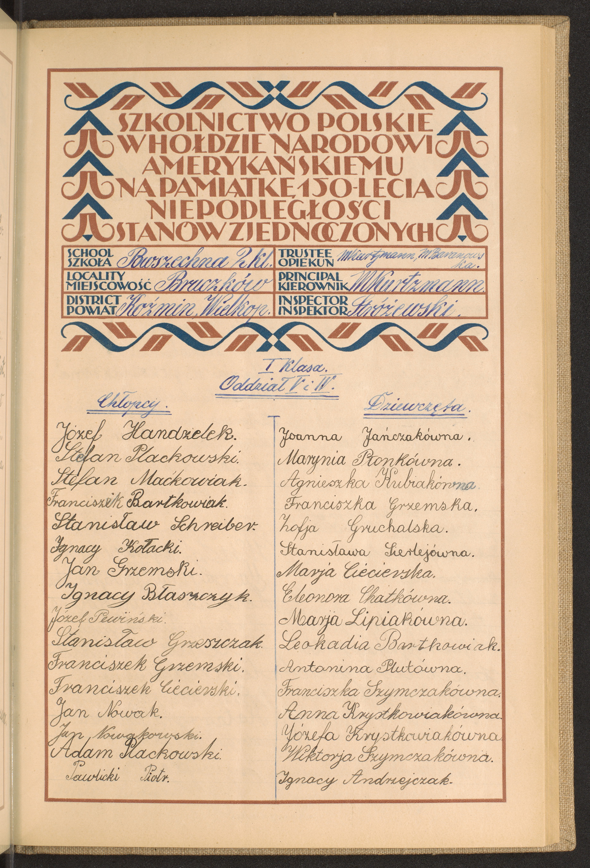 szkoły powszechne i gimnazja; powiaty Kozienice-Kraków