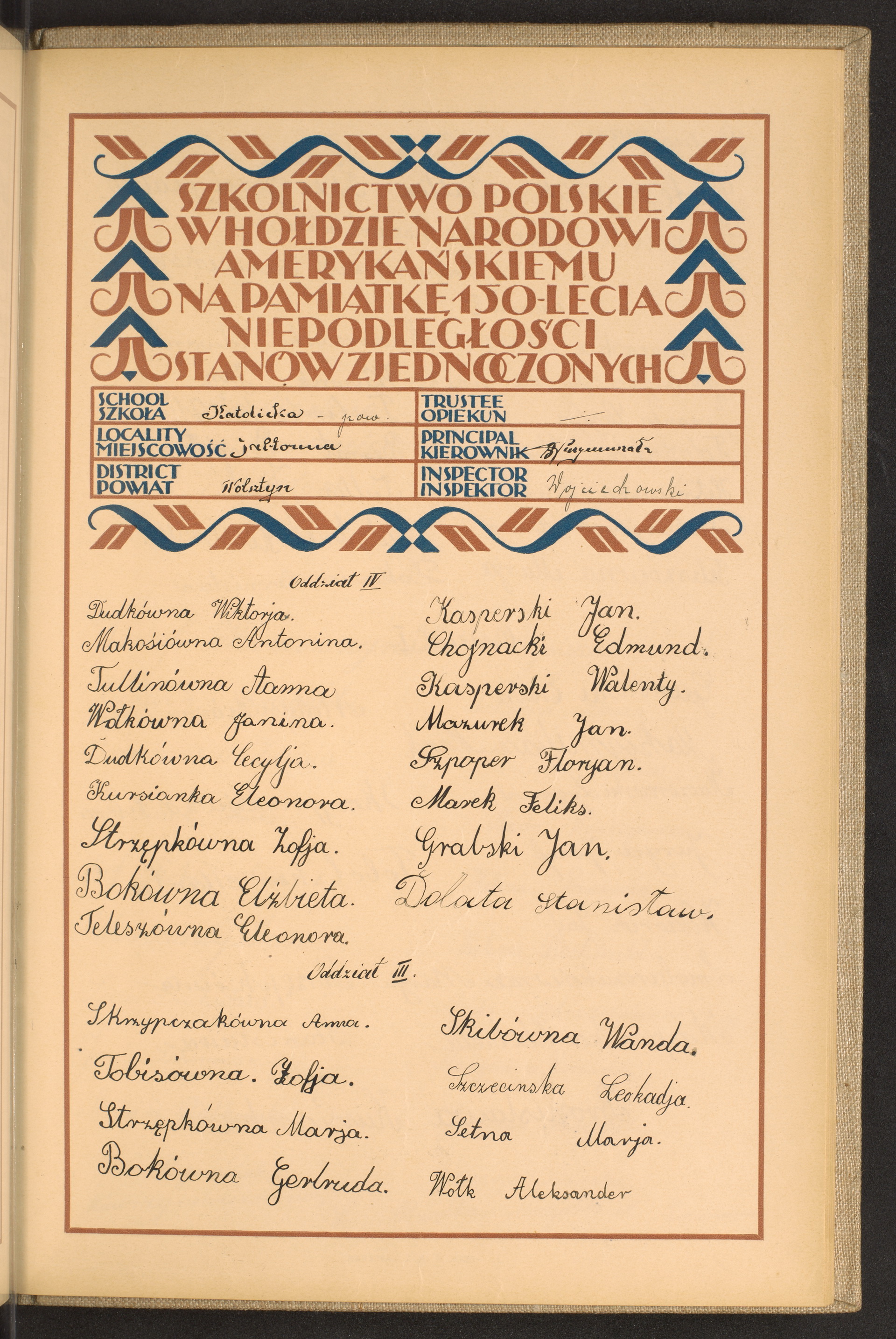 szkoły powszechne i gimnazja; powiaty Witkowo-Wołożyn; tom 90