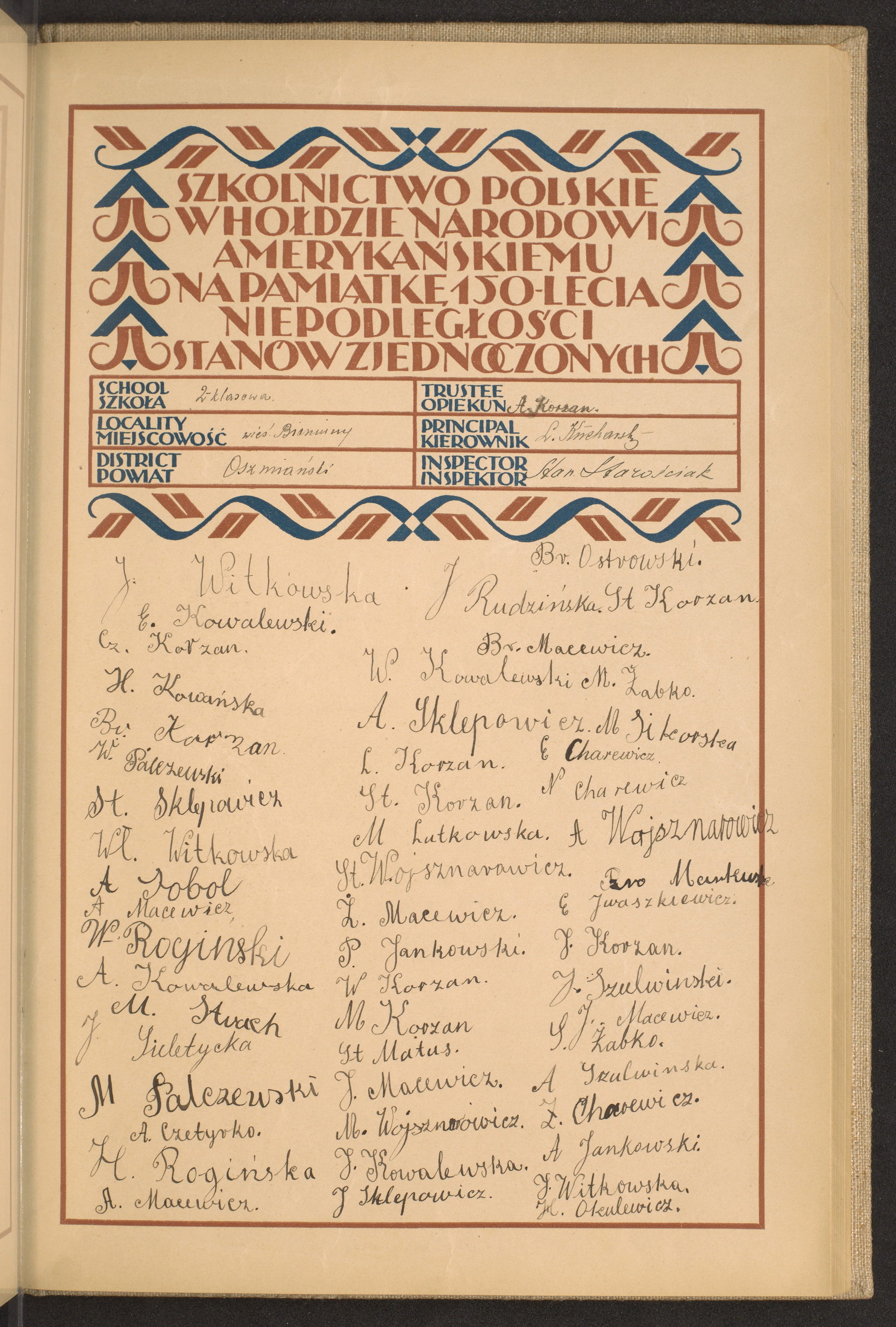szkoły powszechne i gimnazja; powiaty Ostrów Mazowiecka - Oszmiana