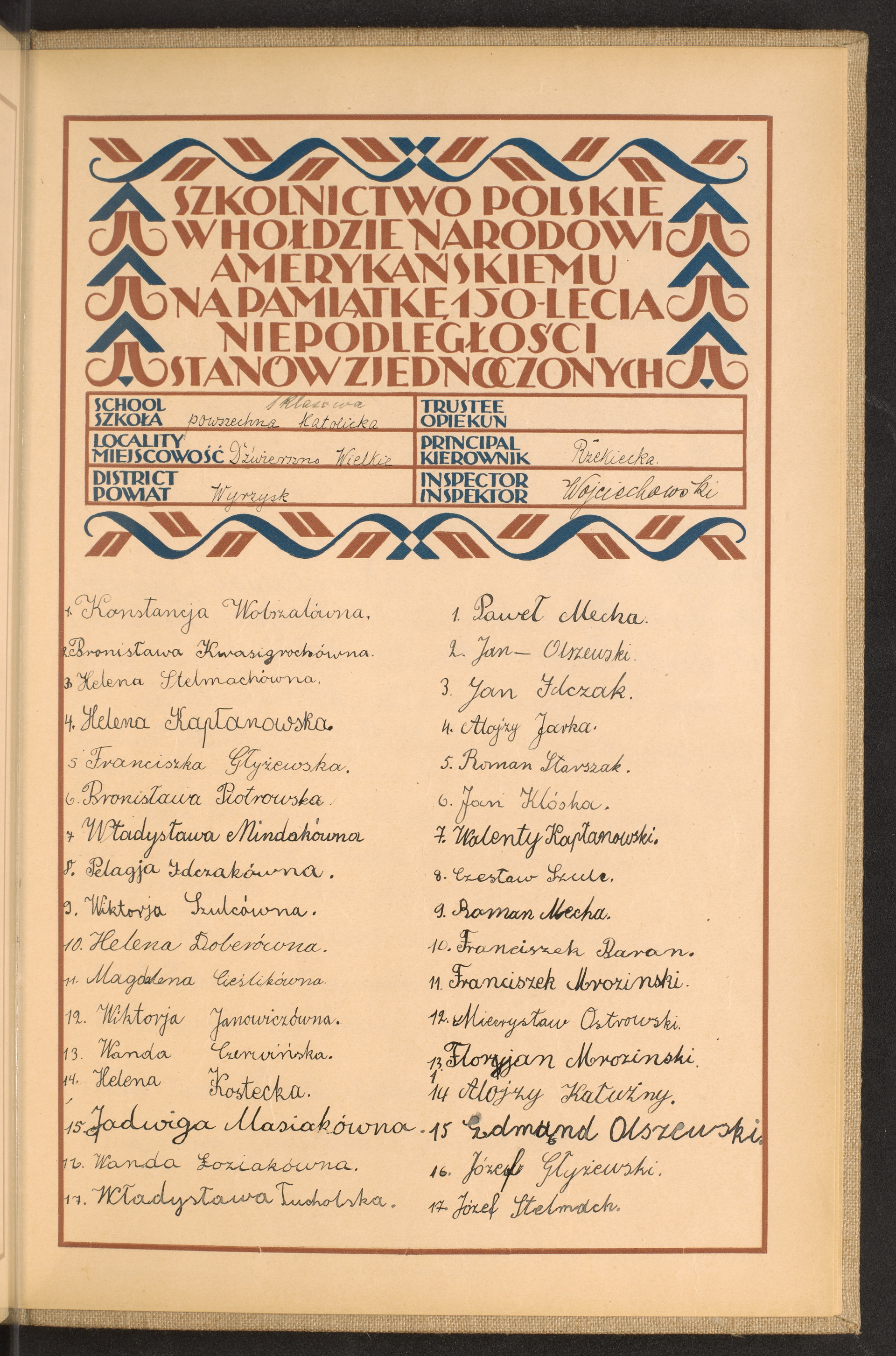 szkoły powszechne i gimnazja; powiaty Wołożyn-Wyrzysk