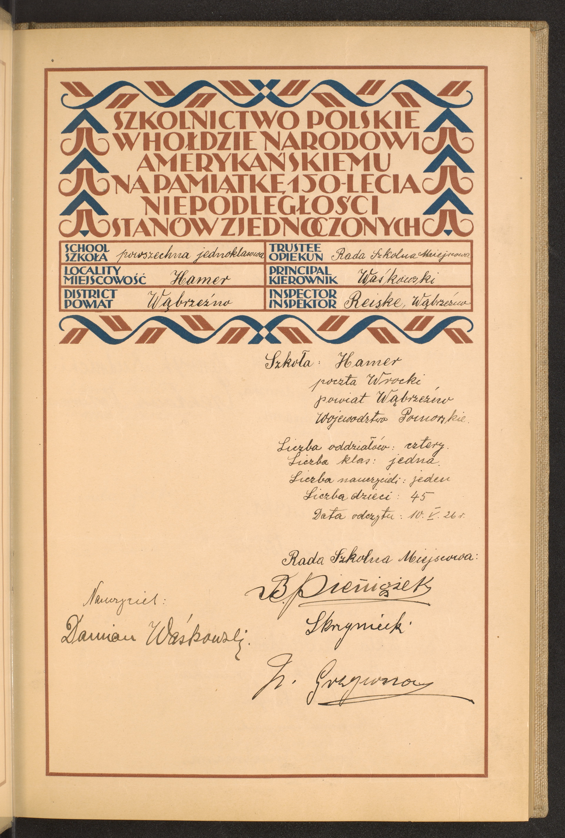 szkoły powszechne i gimnazja; powiaty Wąbrzeźno-Wejhorowo