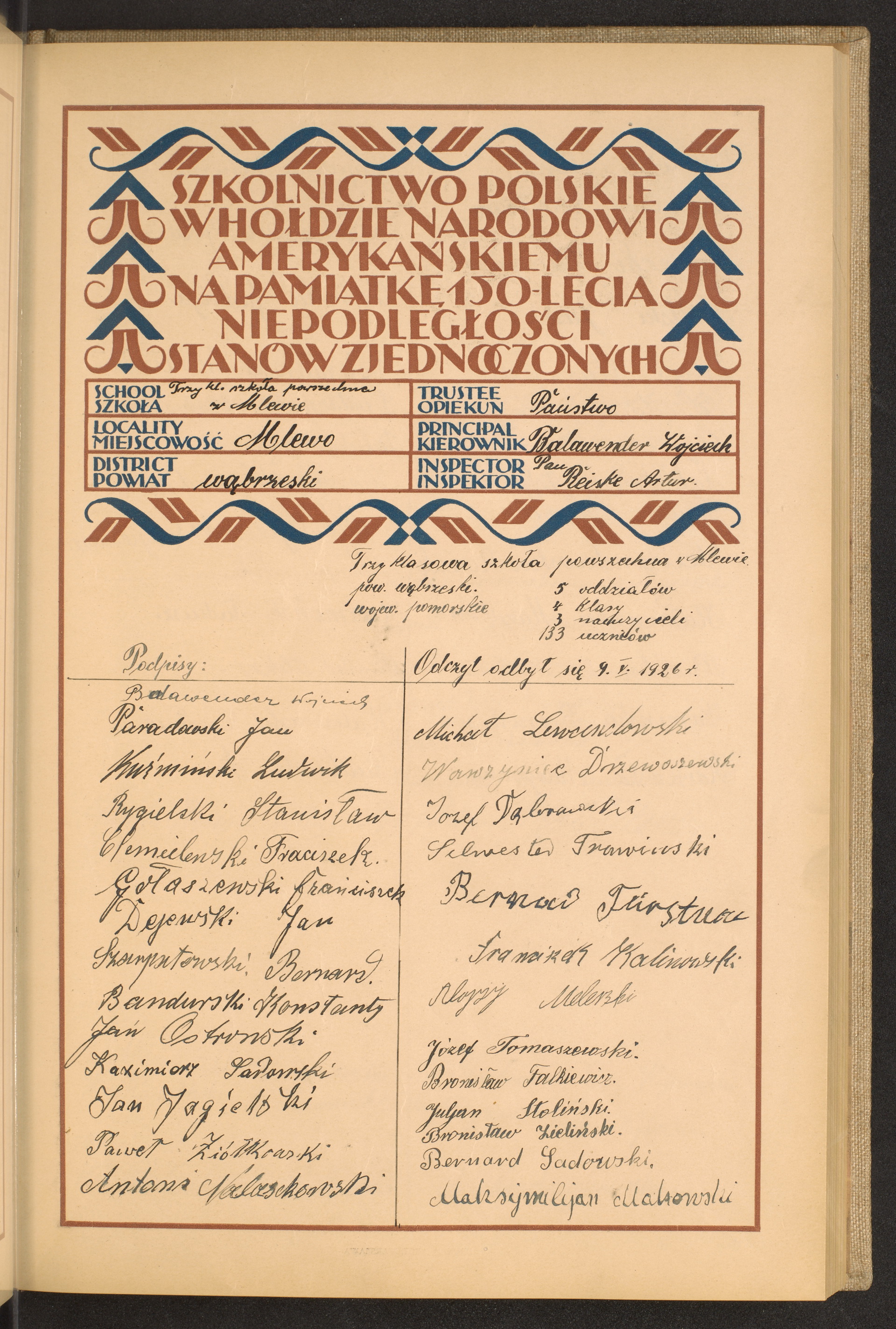 szkoły powszechne i gimnazja; powiaty Wąbrzeźno-Wejhorowo
