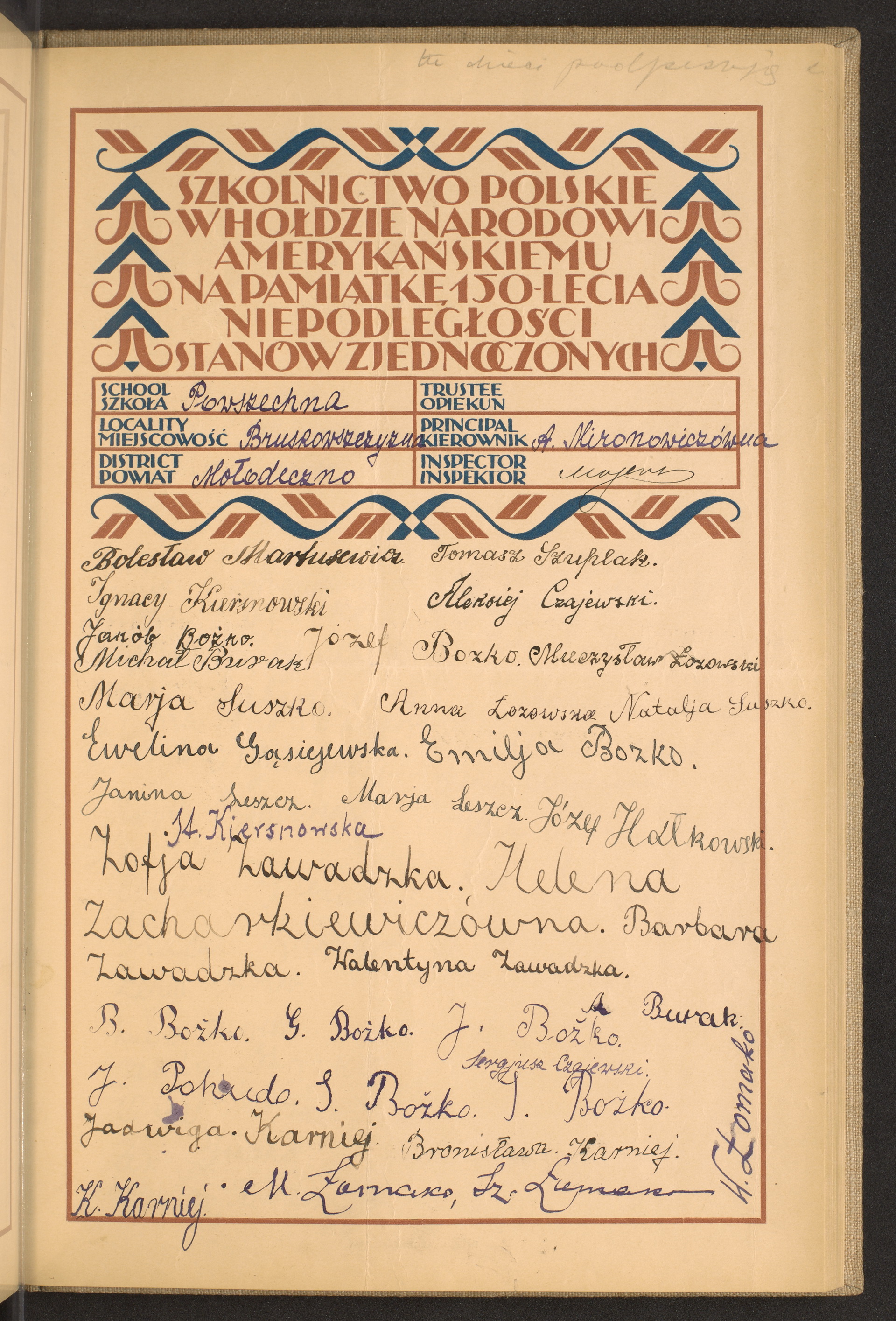 szkoły powszechne i gimnazja; powiaty Mława-Nadwórna