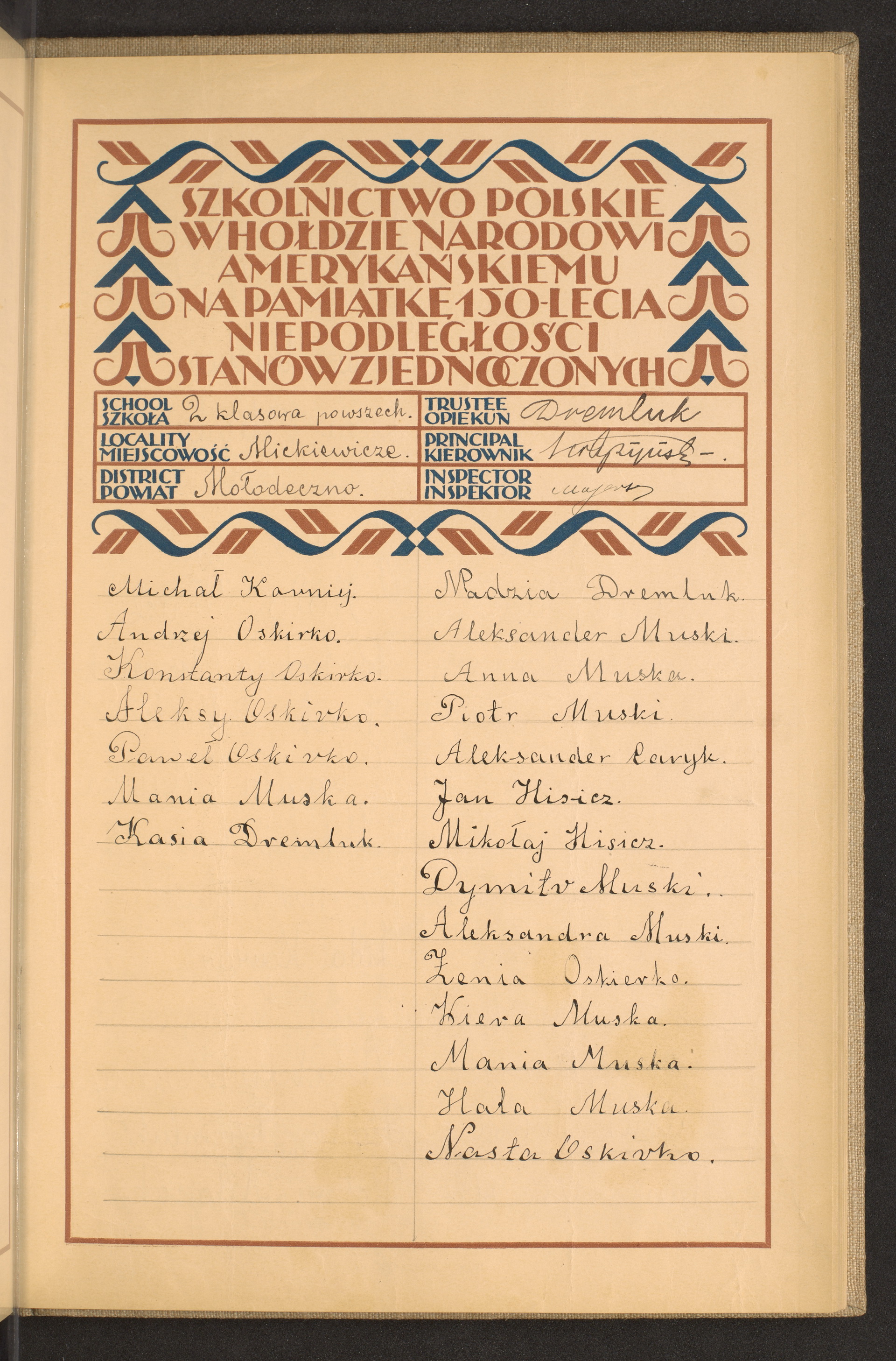 szkoły powszechne i gimnazja; powiaty Mława-Nadwórna