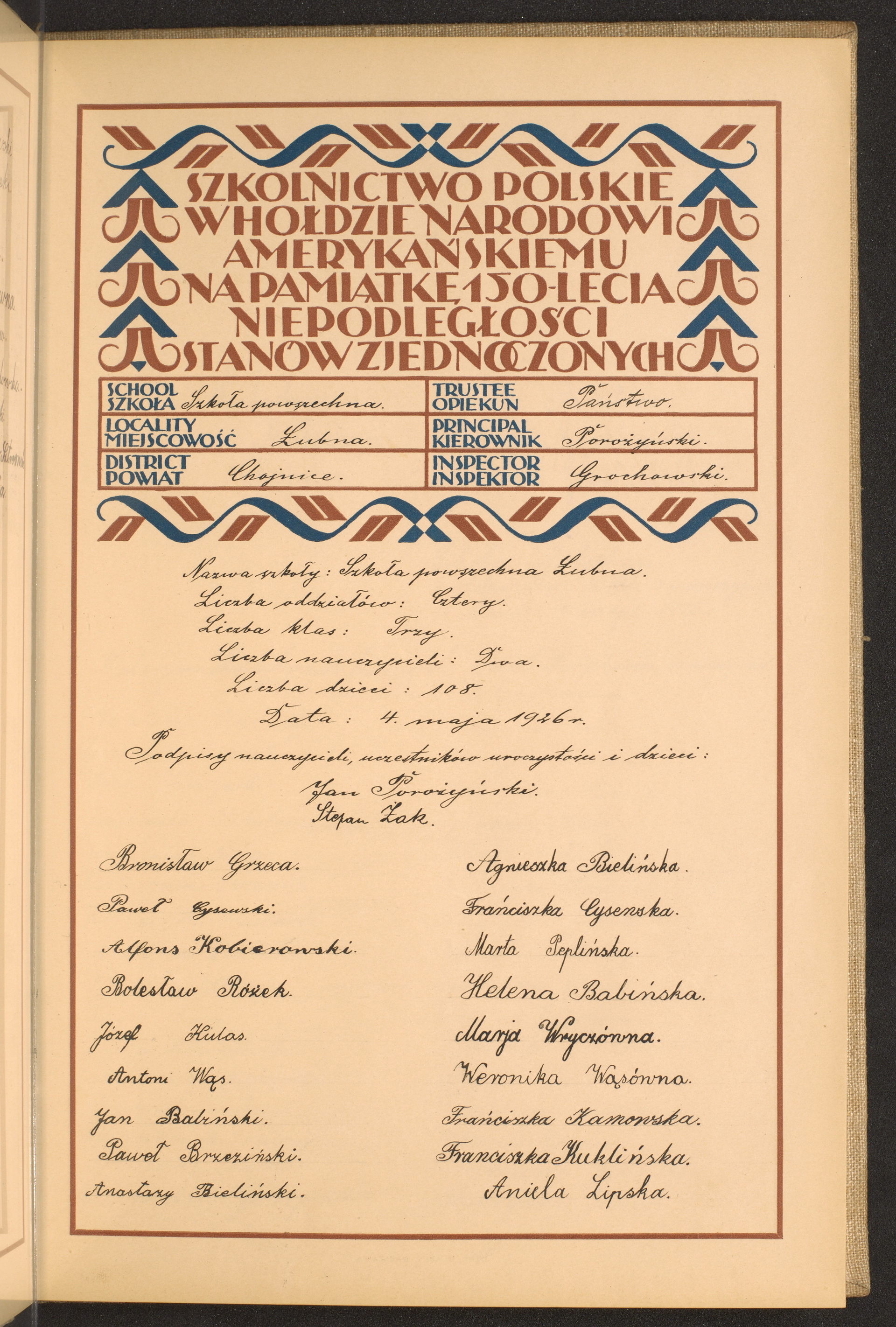 szkoły powszechne i gimnazja; powiaty Chojnice-Chrzanów