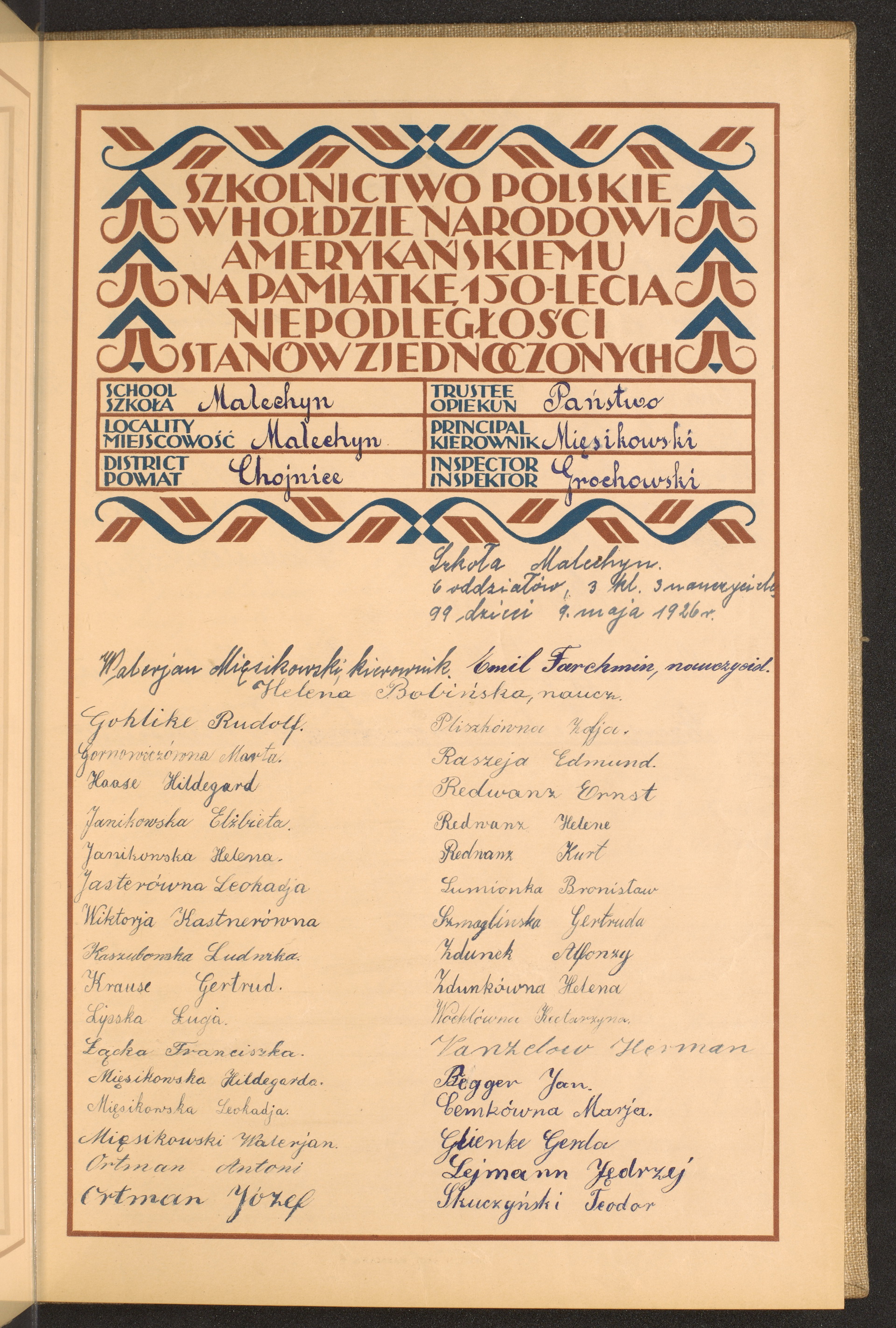 szkoły powszechne i gimnazja; powiaty Chojnice-Chrzanów