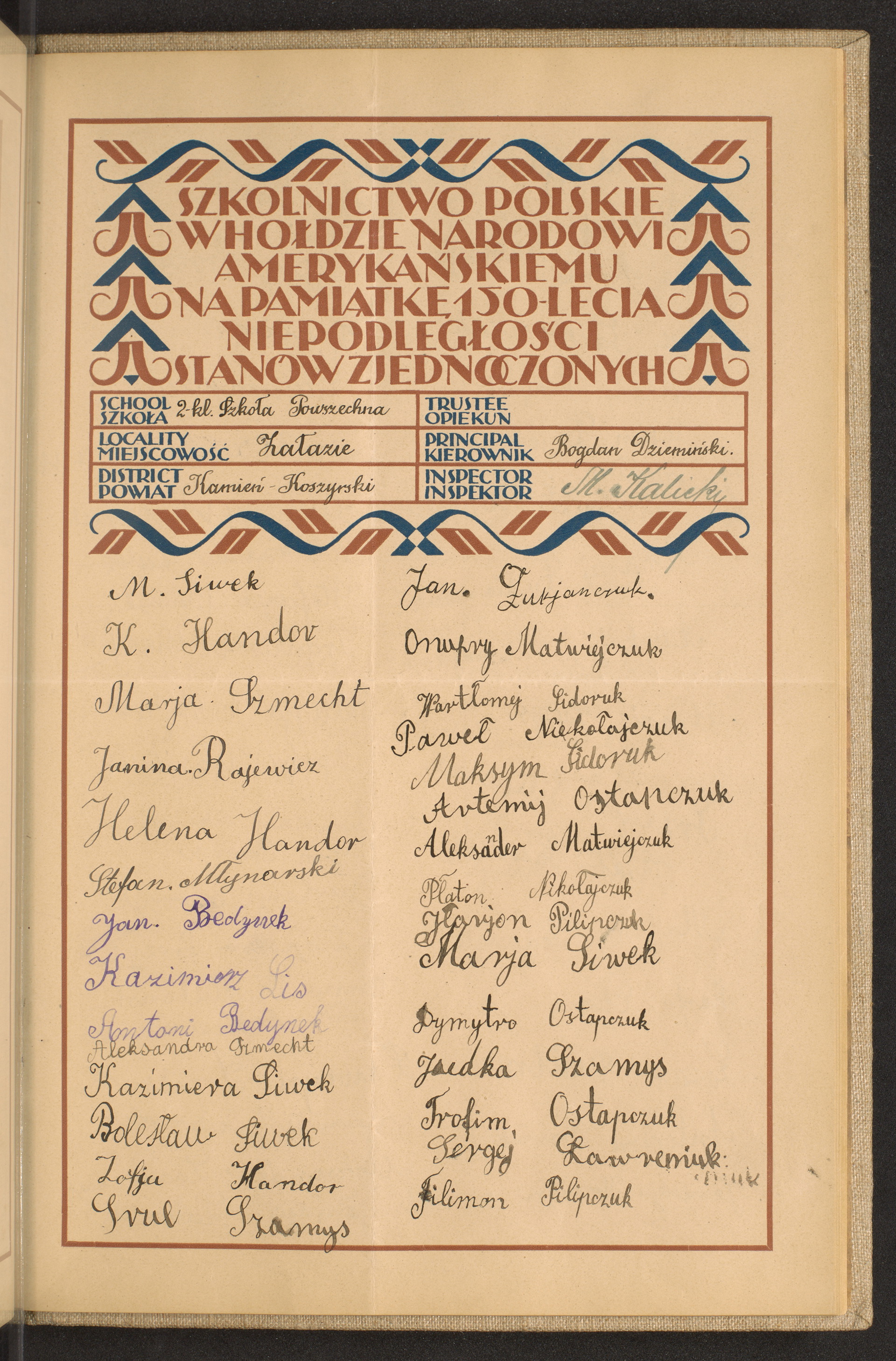 szkoły powszechne i gimnazja; powiaty Jaworów - Kamionka