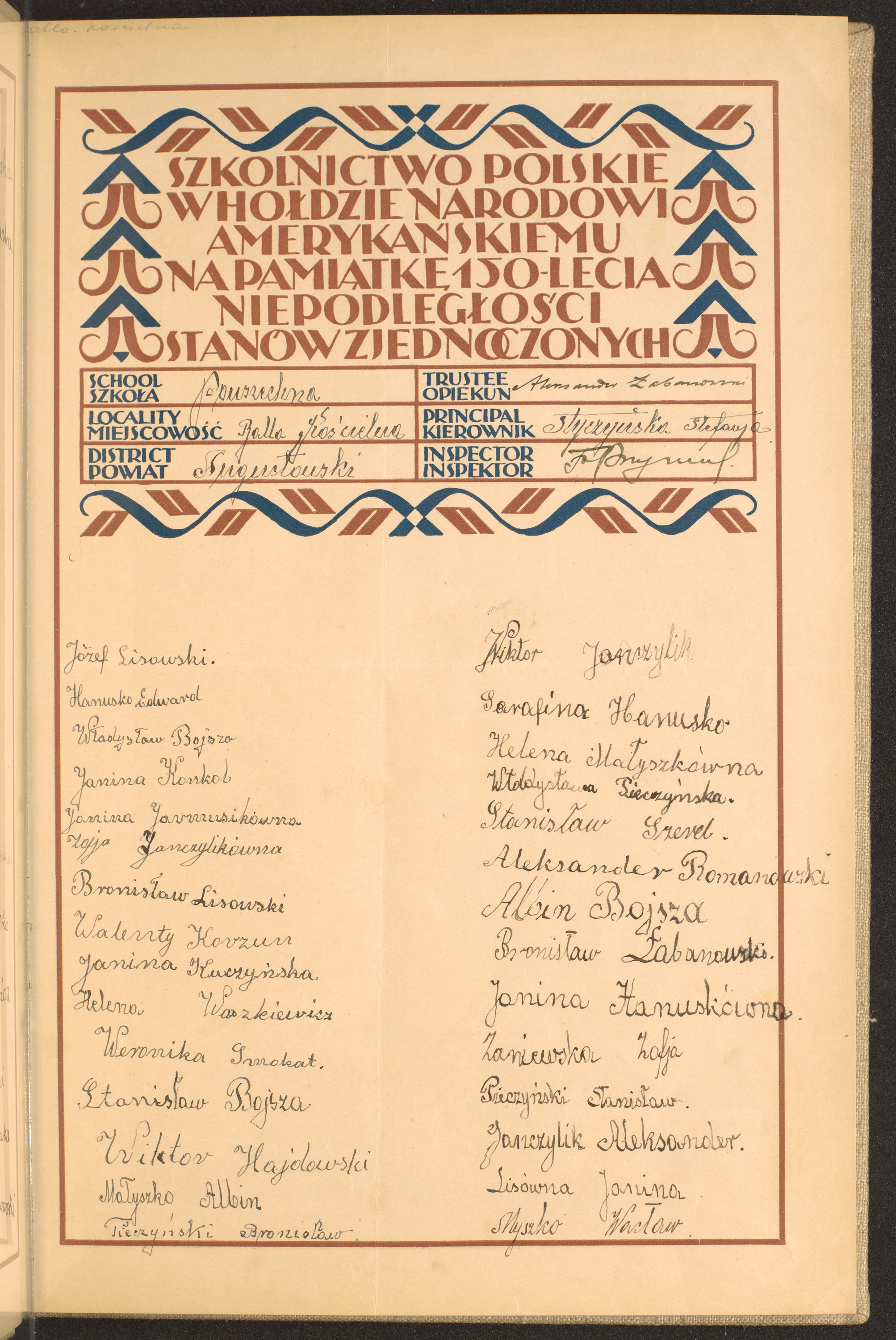 szkoły powszechne i gimnazja; powiaty Augustów - Będzin