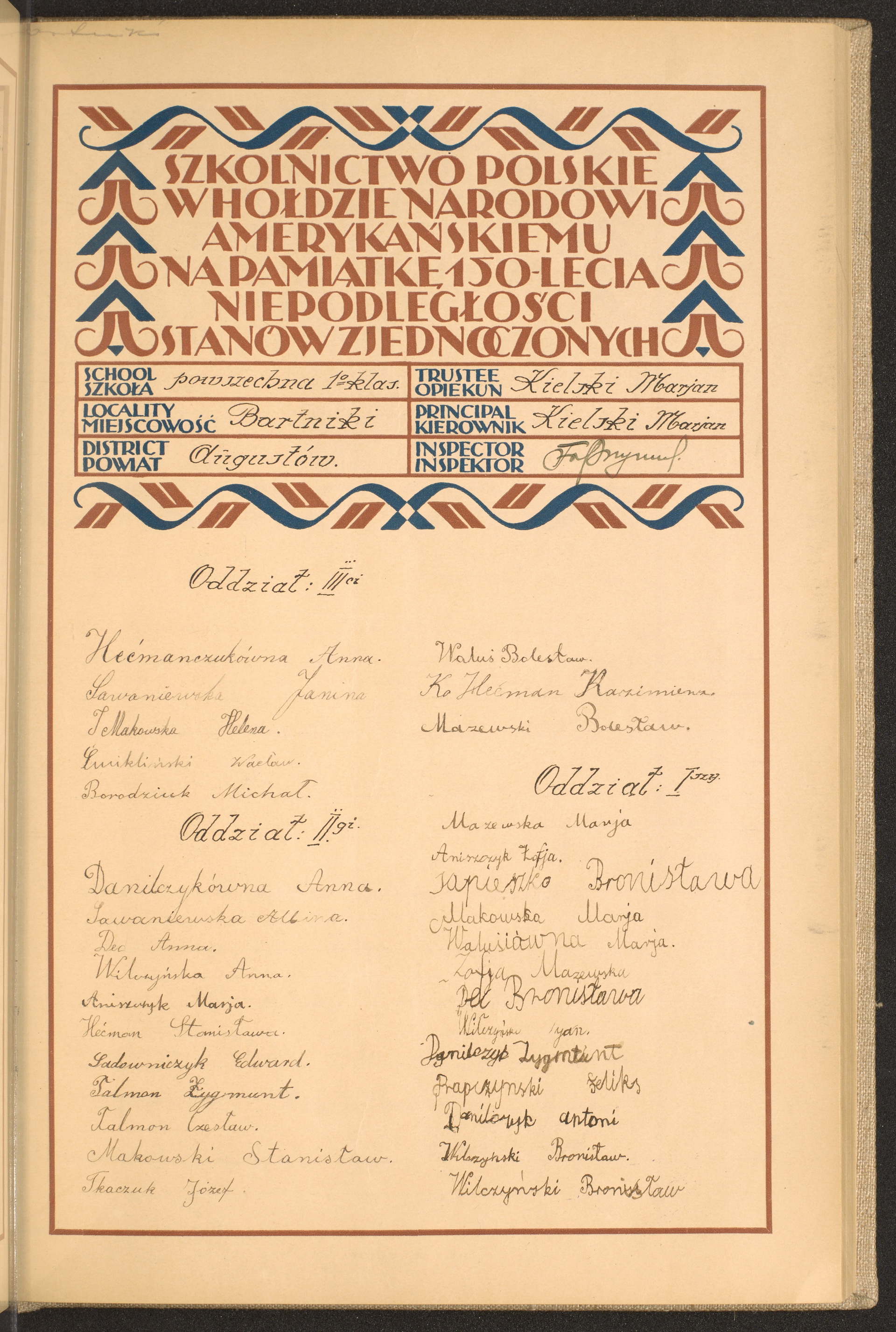 szkoły powszechne i gimnazja; powiaty Augustów - Będzin