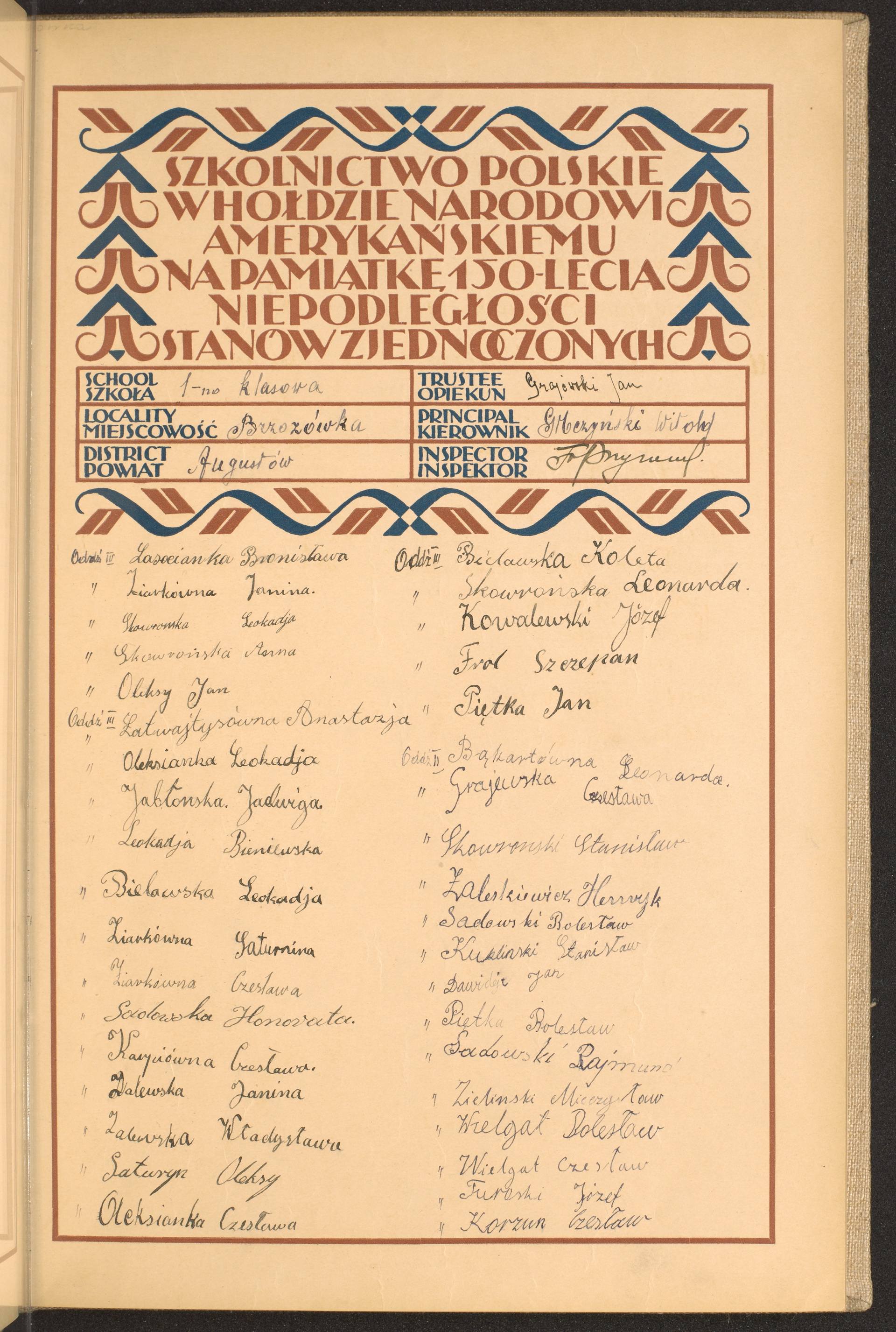 szkoły powszechne i gimnazja; powiaty Augustów - Będzin
