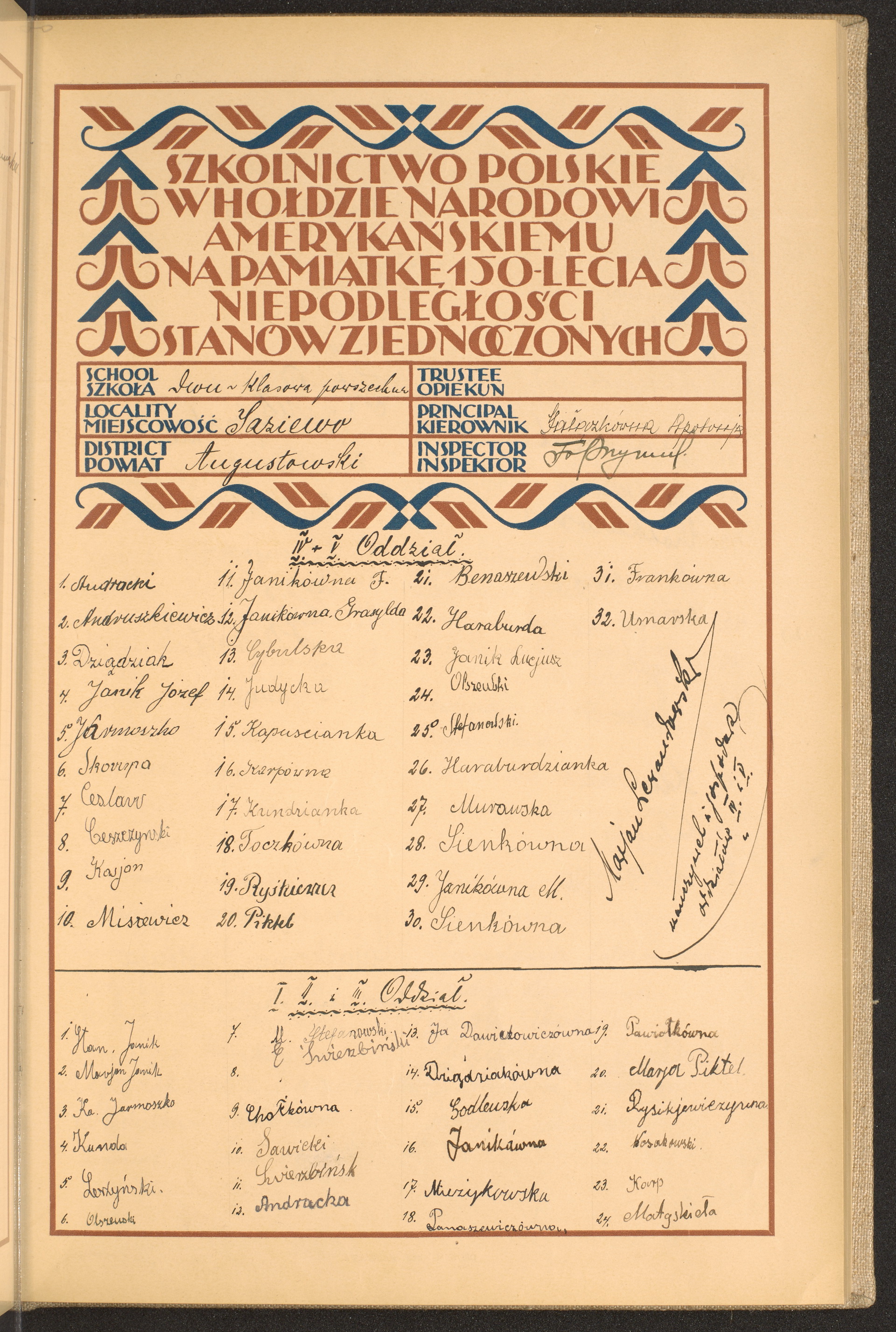szkoły powszechne i gimnazja; powiaty Augustów - Będzin