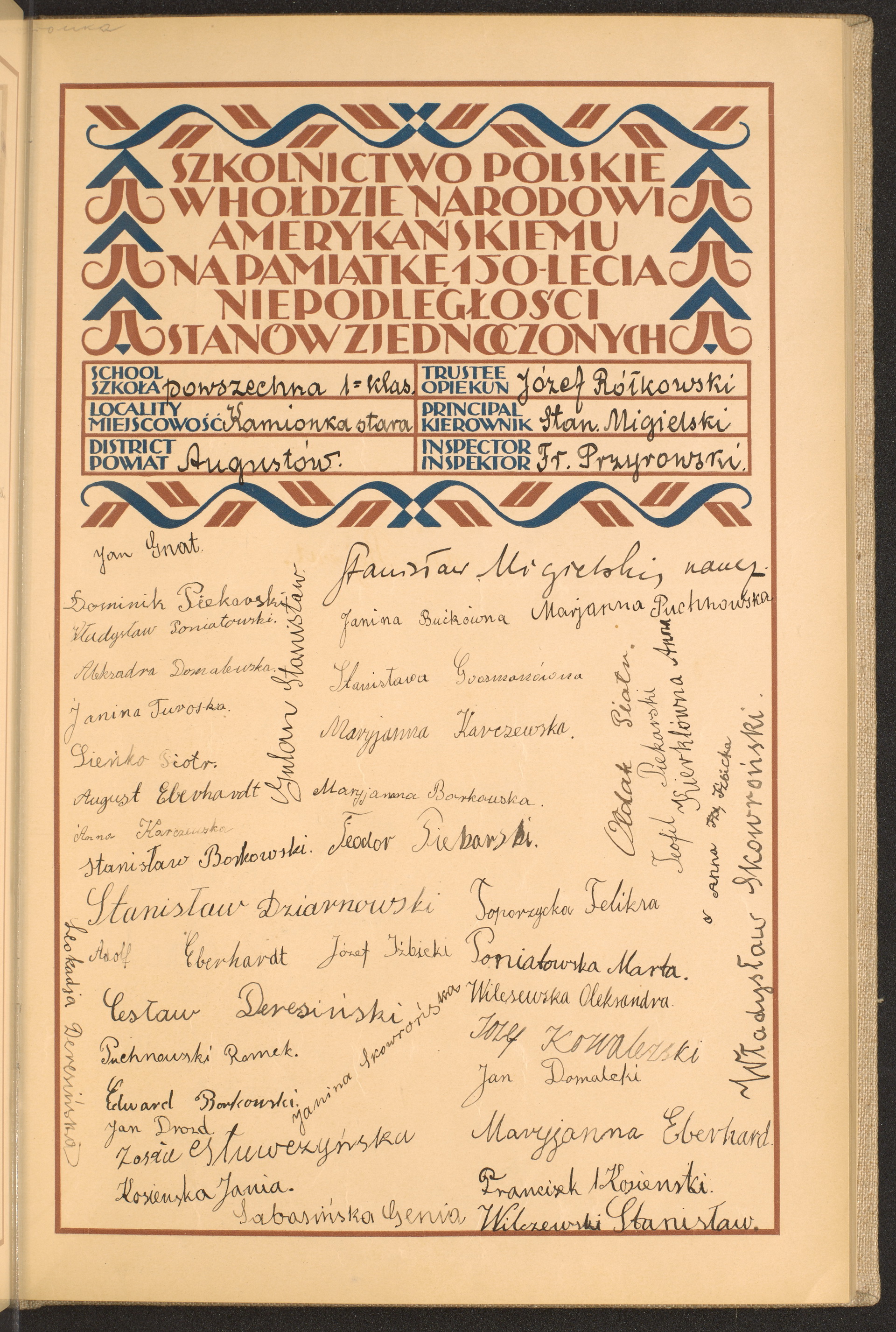 szkoły powszechne i gimnazja; powiaty Augustów - Będzin