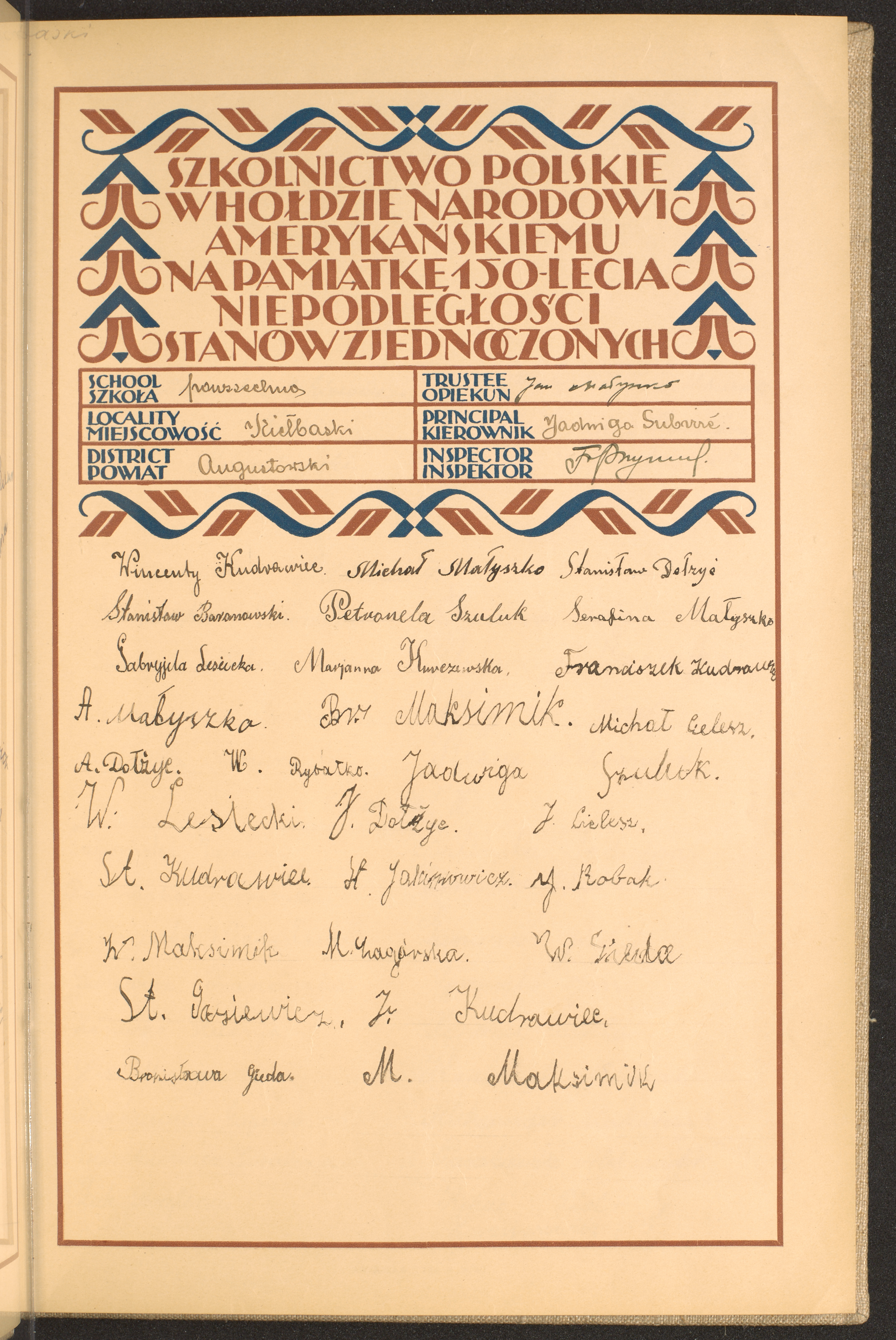 szkoły powszechne i gimnazja; powiaty Augustów - Będzin