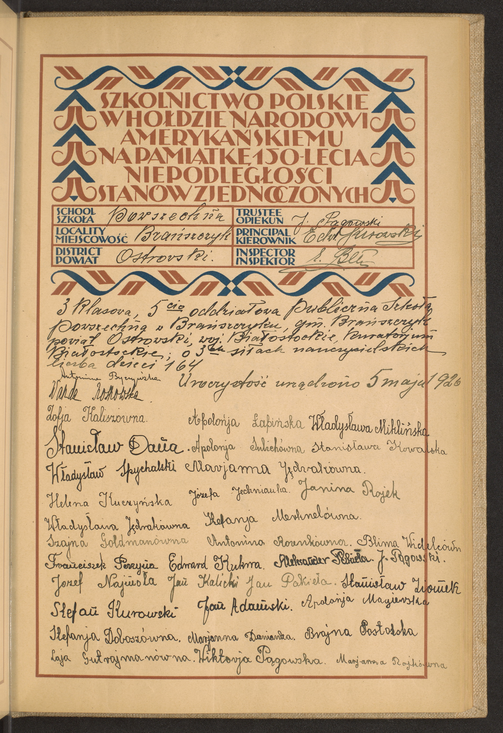 szkoły powszechne i gimnazja; powiaty Ostrołęka - Ostrów