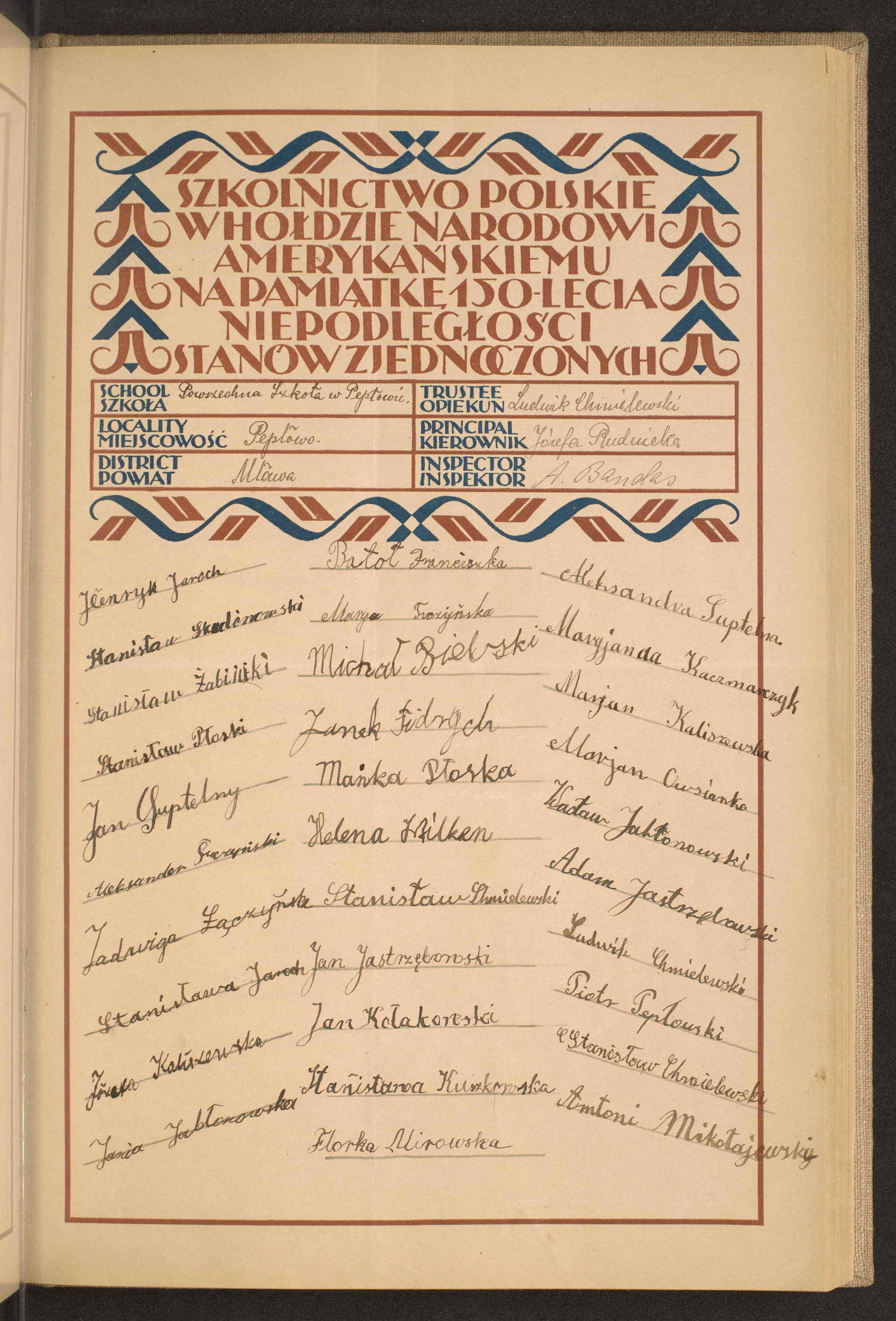 szkoły powszechne i gimnazja; powiaty Mława-Nadwórna