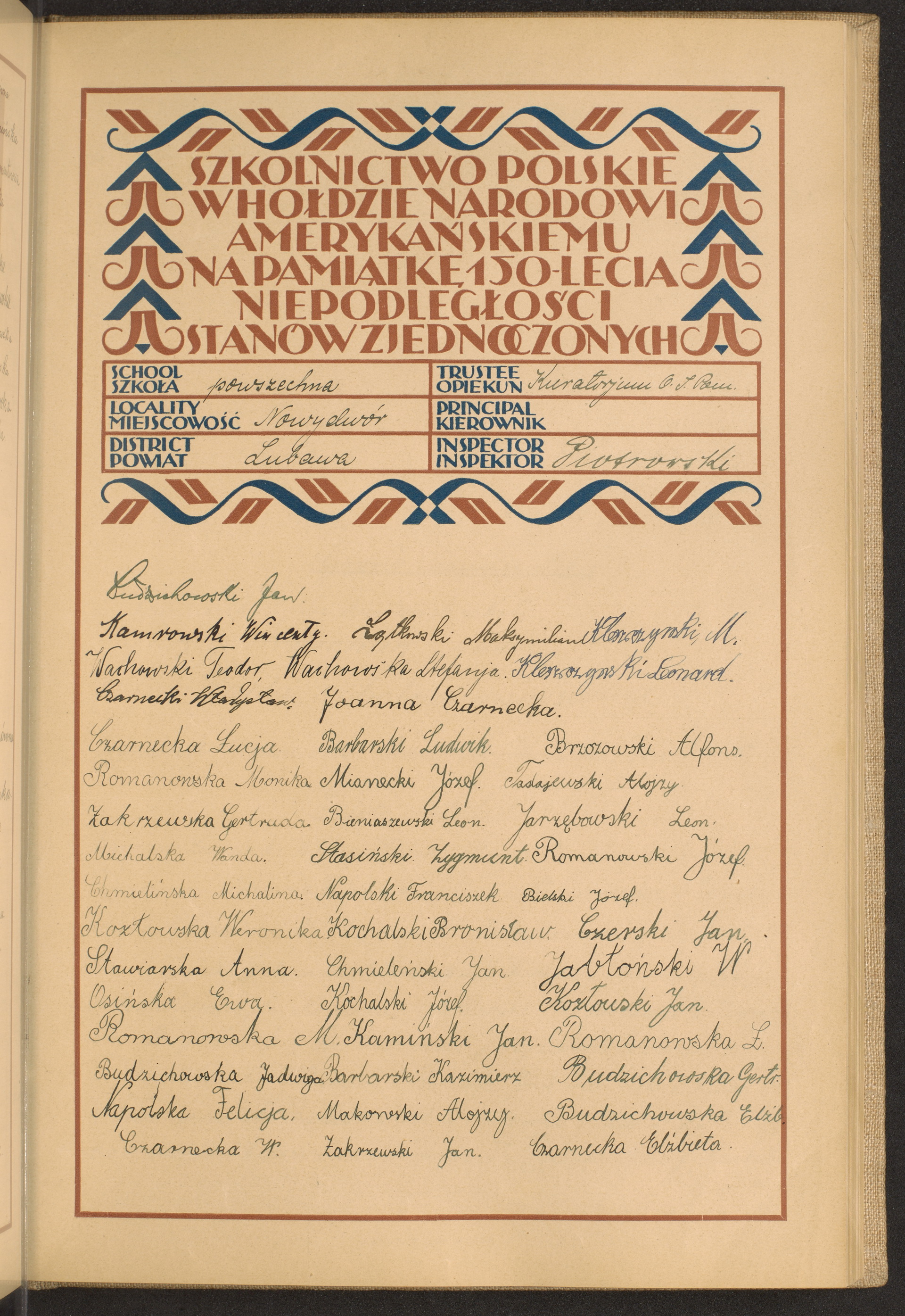 szkoły powszechne i gimnazja; powiaty Lubawa-Lubliniec