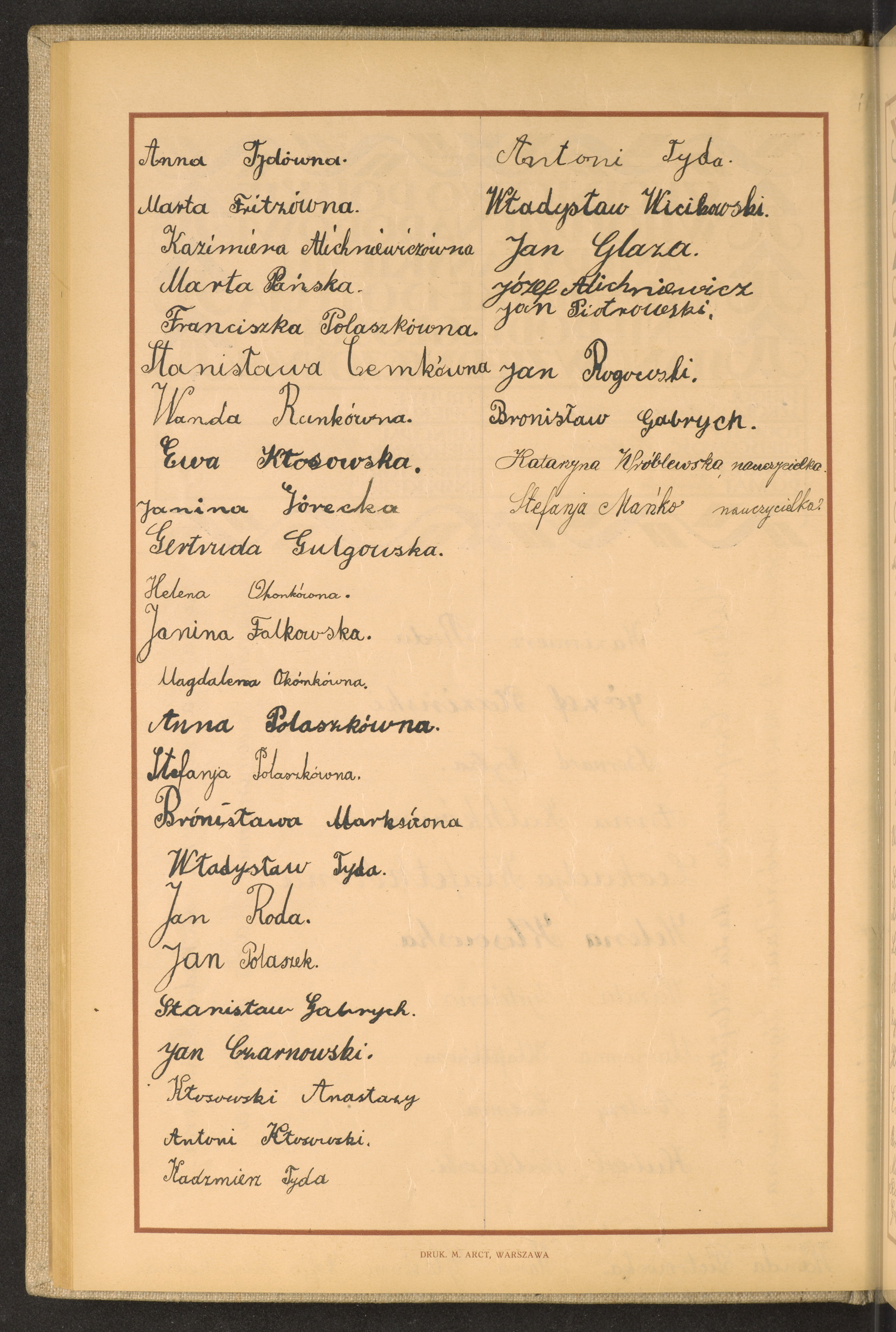 szkoły powszechne i gimnazja; powiaty Tuchola-Warszawa