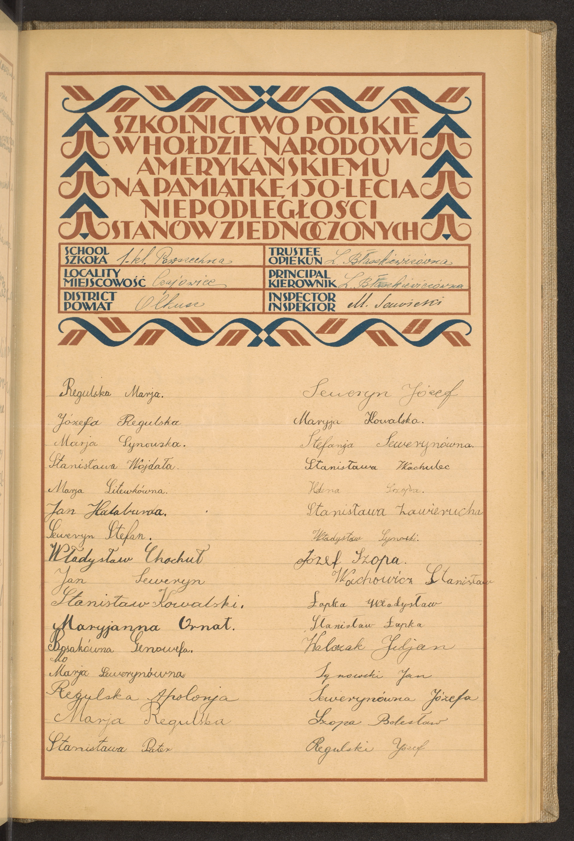 szkoły powszechne i gimnazja; powiaty Olkusz-Ostrołęka