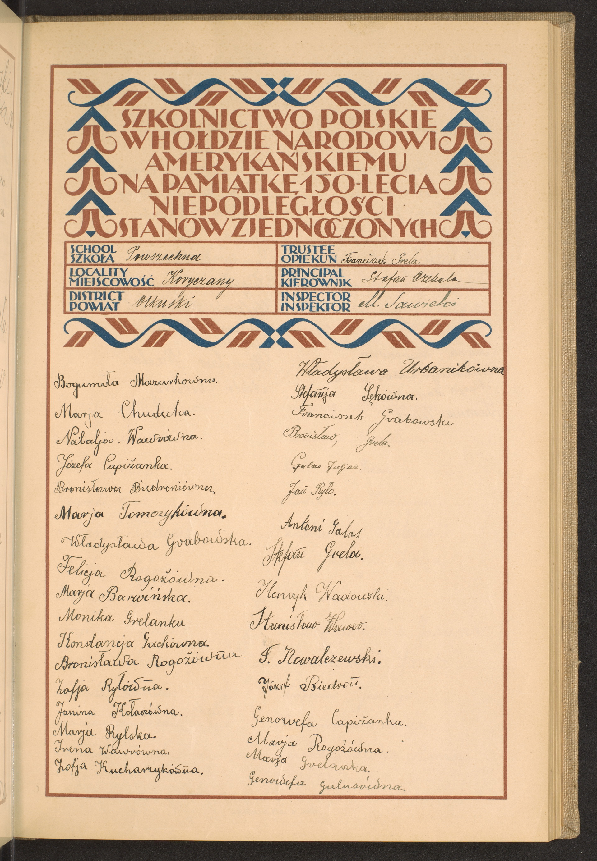 szkoły powszechne i gimnazja; powiaty Olkusz-Ostrołęka