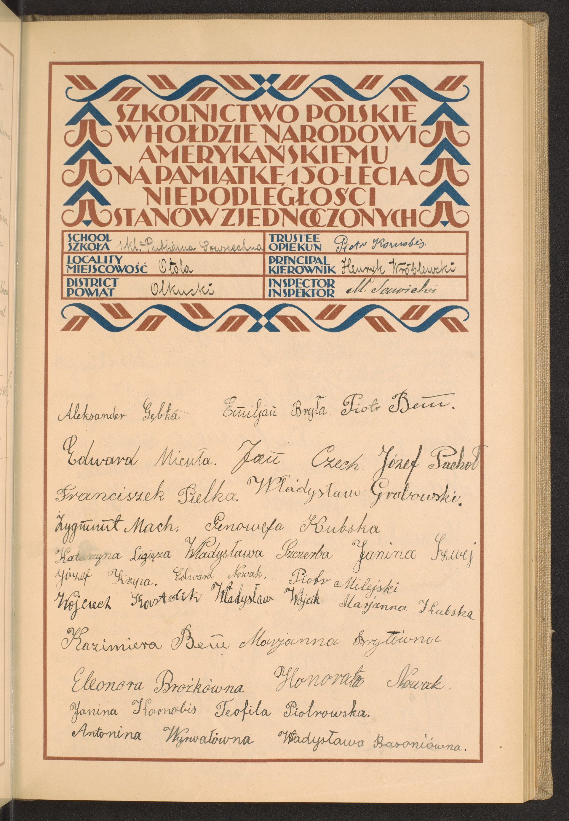 szkoły powszechne i gimnazja; powiaty Olkusz-Ostrołęka