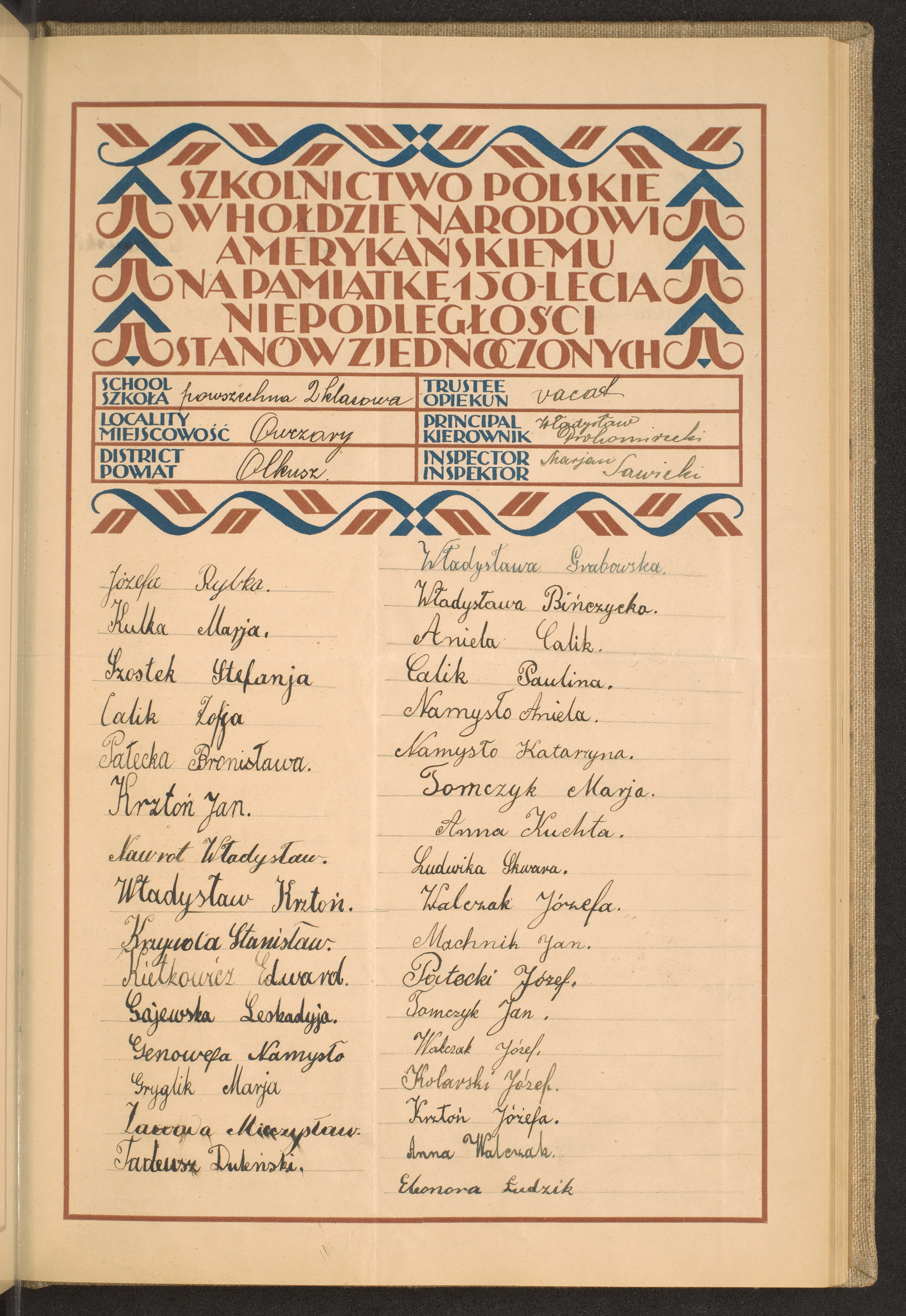szkoły powszechne i gimnazja; powiaty Olkusz-Ostrołęka