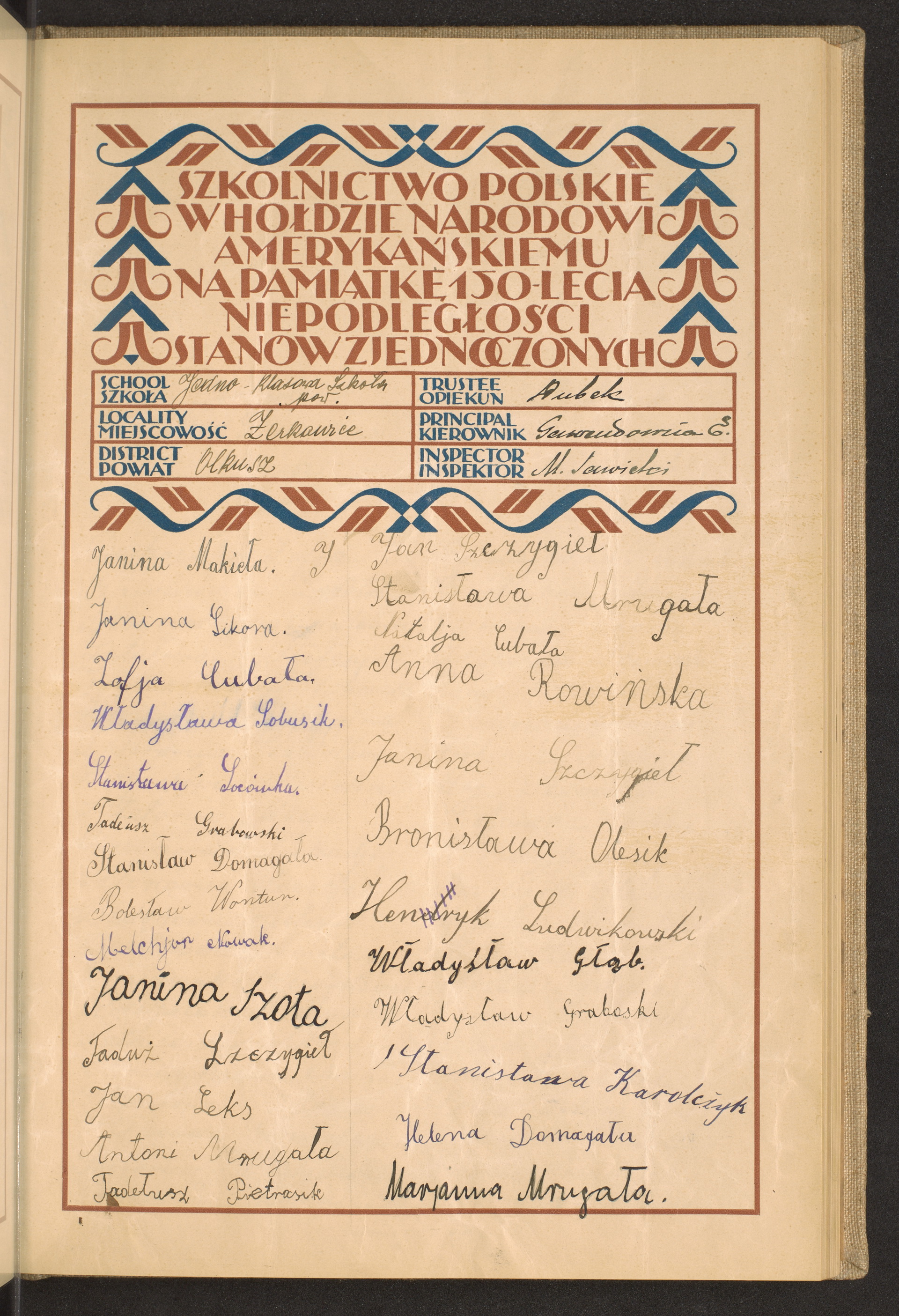 szkoły powszechne i gimnazja; powiaty Olkusz-Ostrołęka