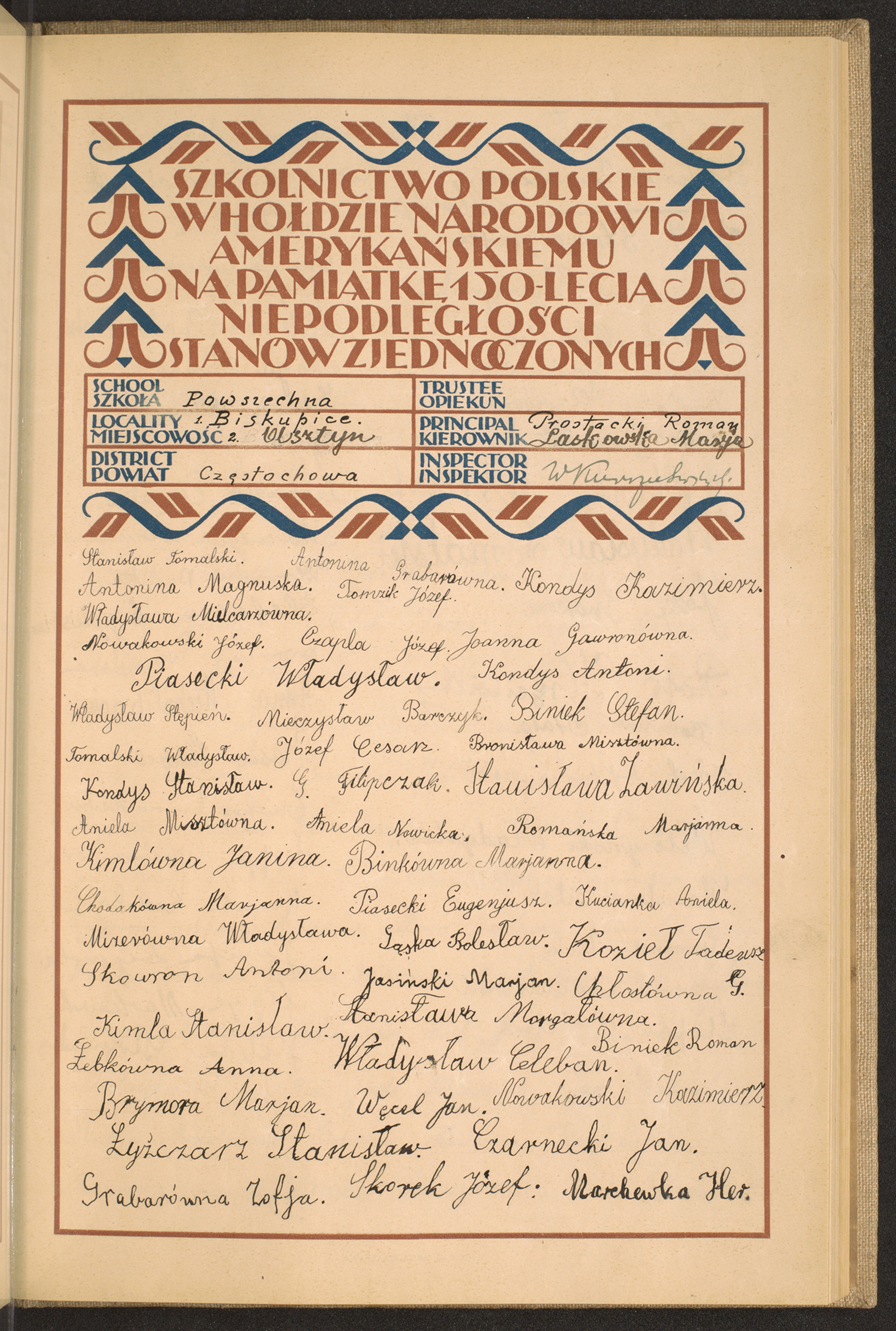 szkoły powszechne i gimnazja; powiat Częstochowa-Dolina