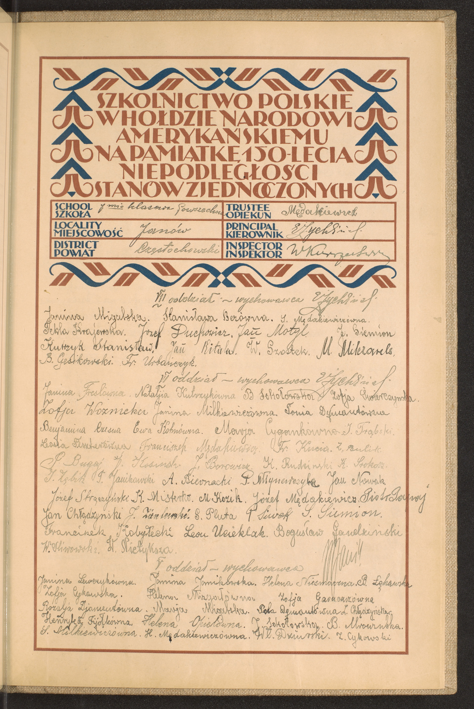 szkoły powszechne i gimnazja; powiaty Ciechanów - Częstochowa