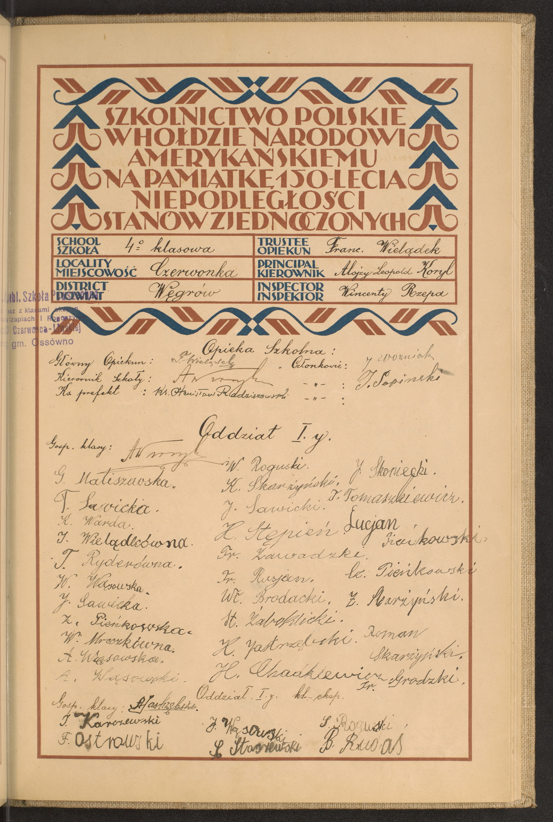 szkoły powszechne i gimnazja; powiaty Wejhorowo-Węgrów