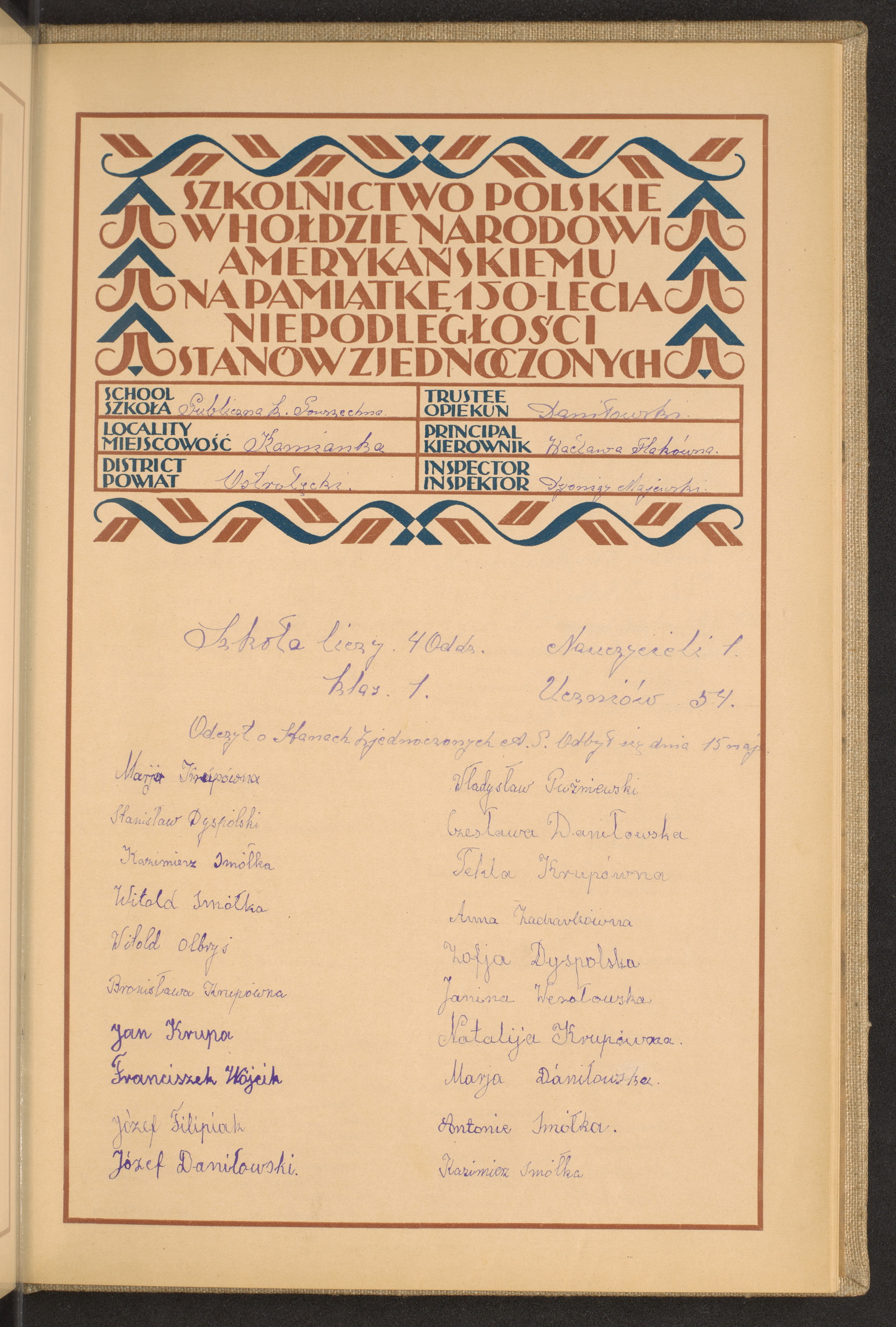 szkoły powszechne i gimnazja; powiaty Olkusz-Ostrołęka
