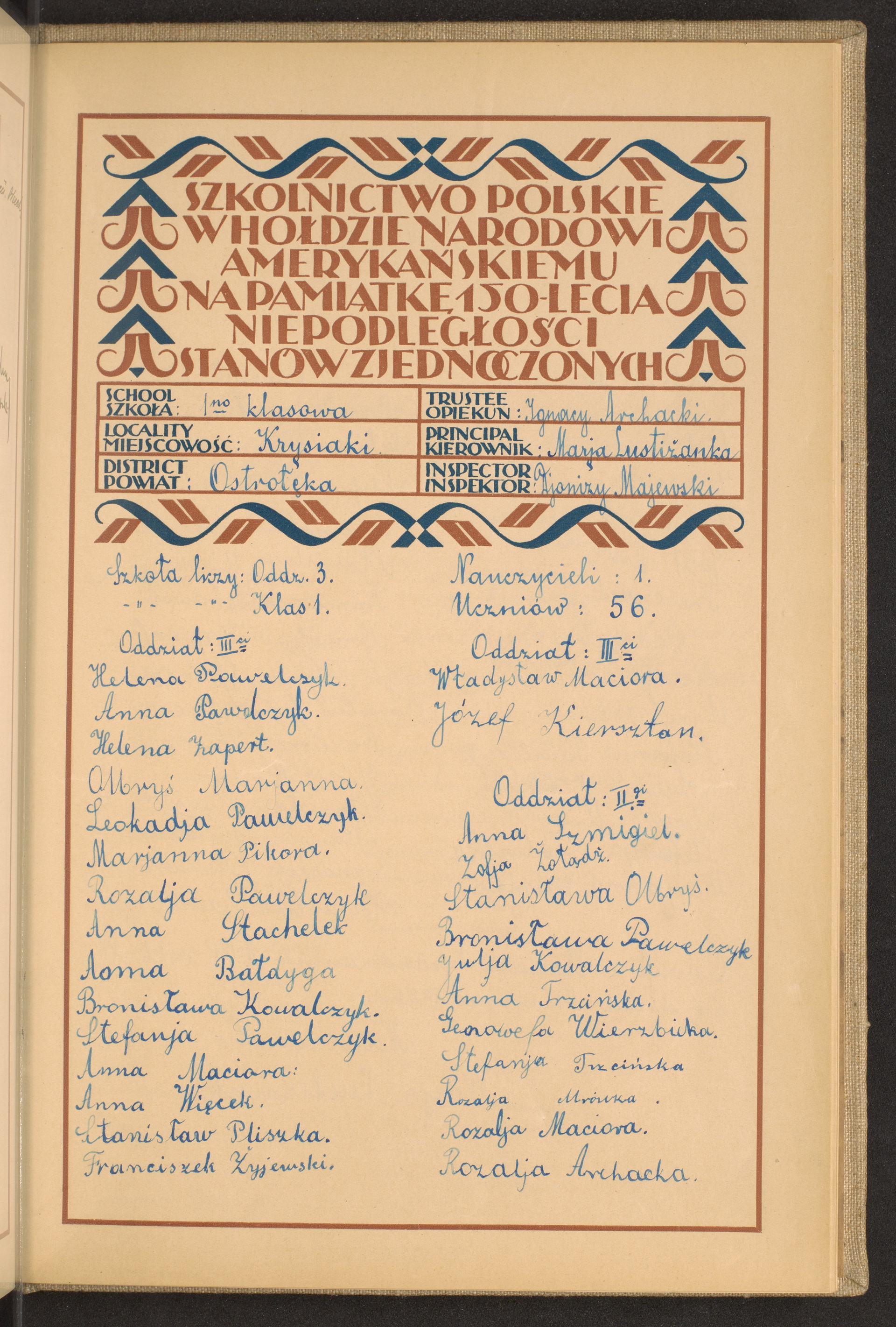 szkoły powszechne i gimnazja; powiaty Olkusz-Ostrołęka