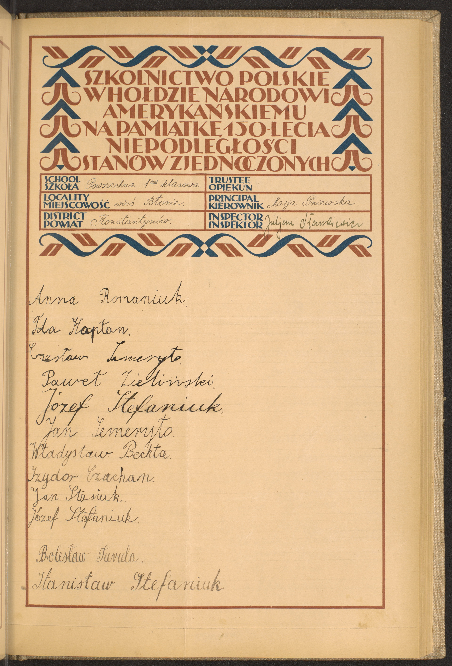 szkoły powszechne i gimnazja; powiaty Końskie - Konstantynów