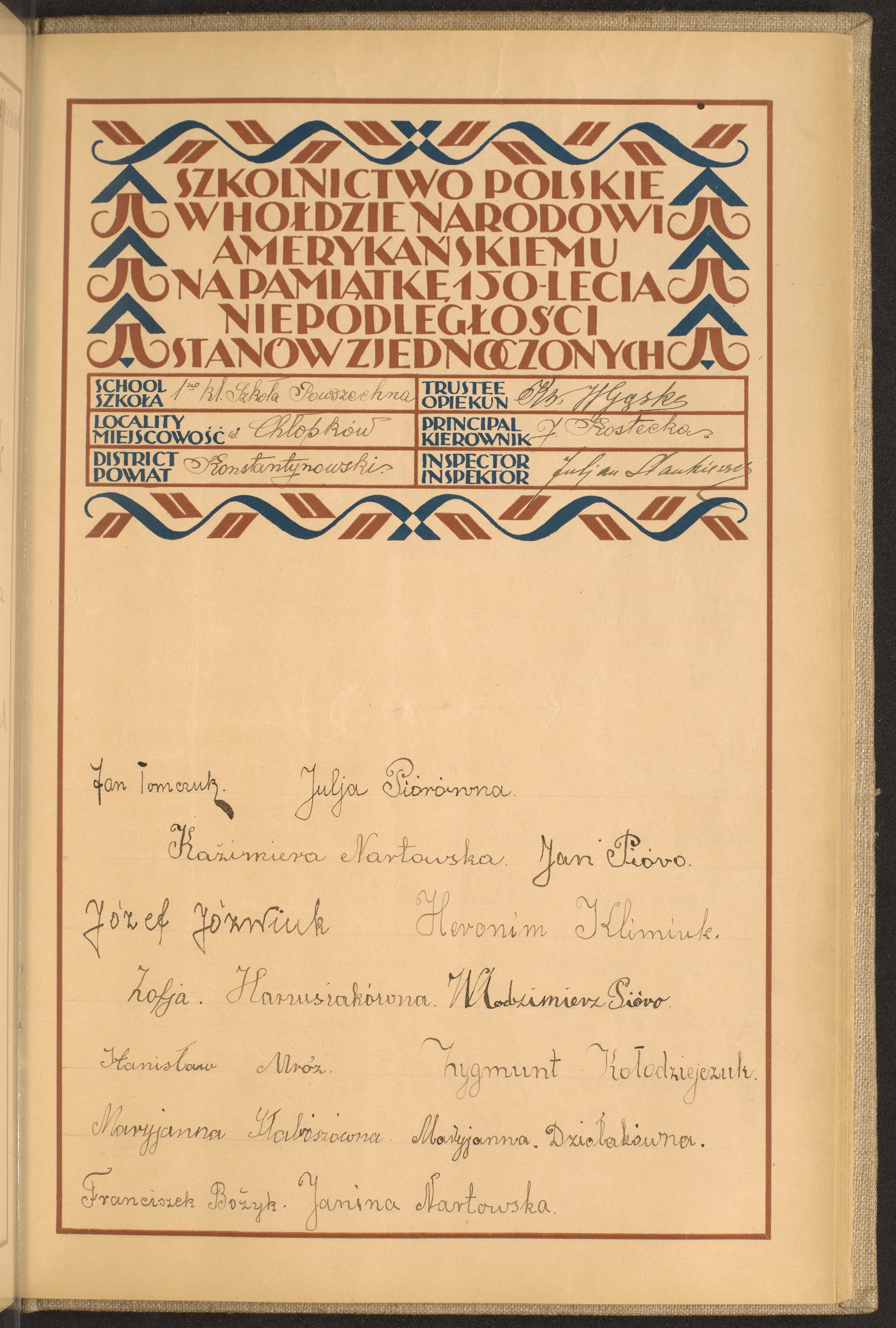 szkoły powszechne i gimnazja; powiaty Końskie - Konstantynów