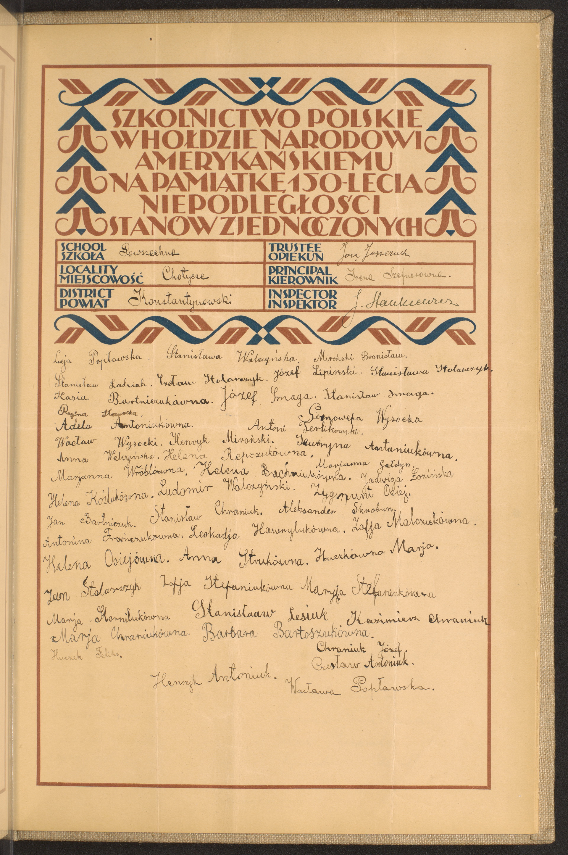 szkoły powszechne i gimnazja; powiaty Końskie - Konstantynów