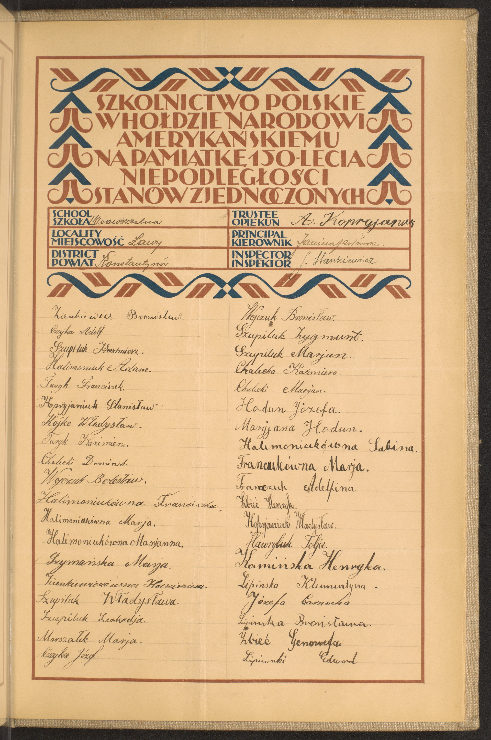 szkoły powszechne i gimnazja; powiaty Końskie - Konstantynów
