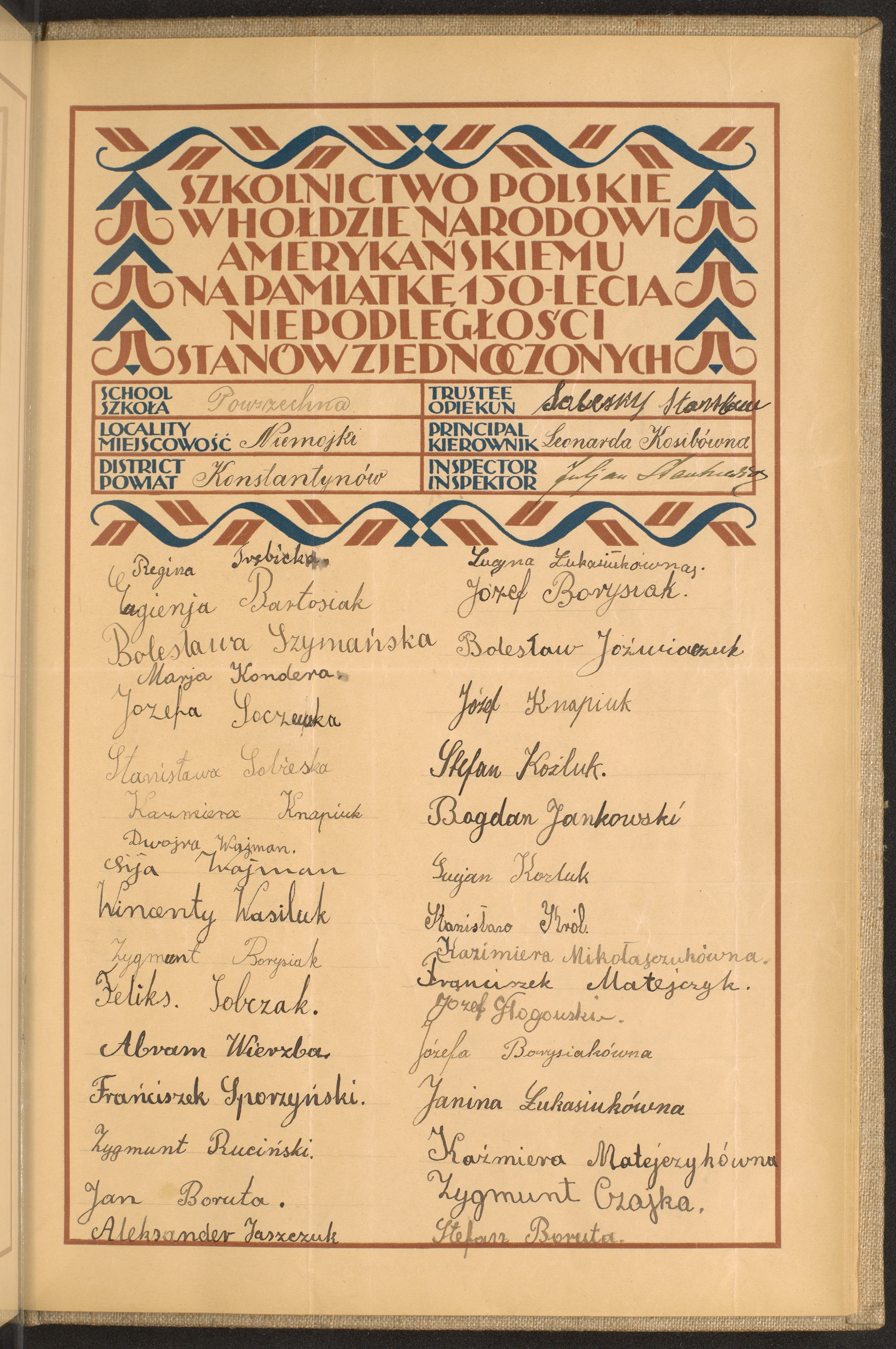 szkoły powszechne i gimnazja; powiaty Końskie - Konstantynów