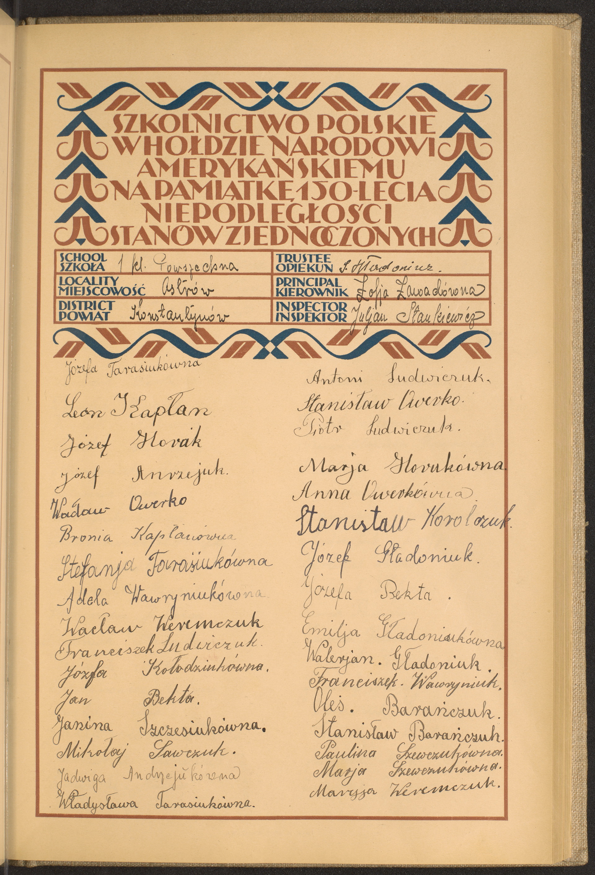 szkoły powszechne i gimnazja; powiaty Końskie - Konstantynów