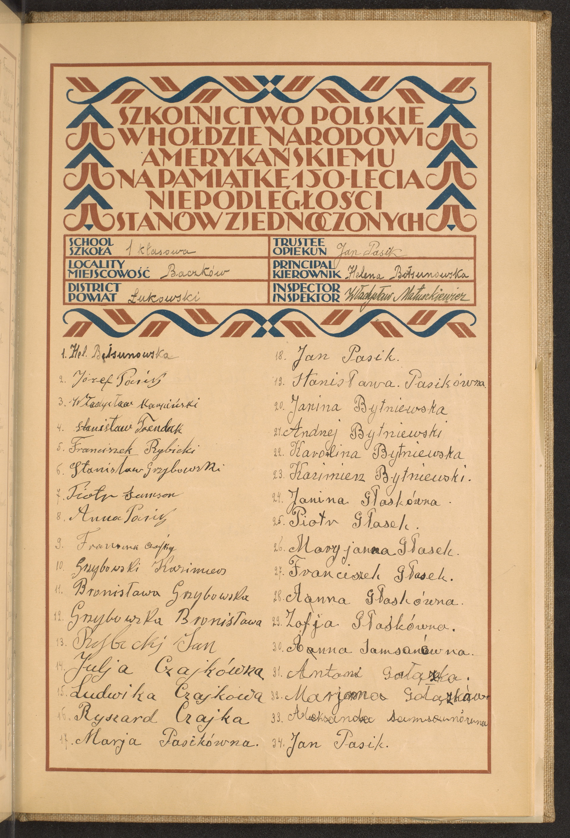 szkoły powszechne i gimnazja; powiaty Łowicz-Łuków