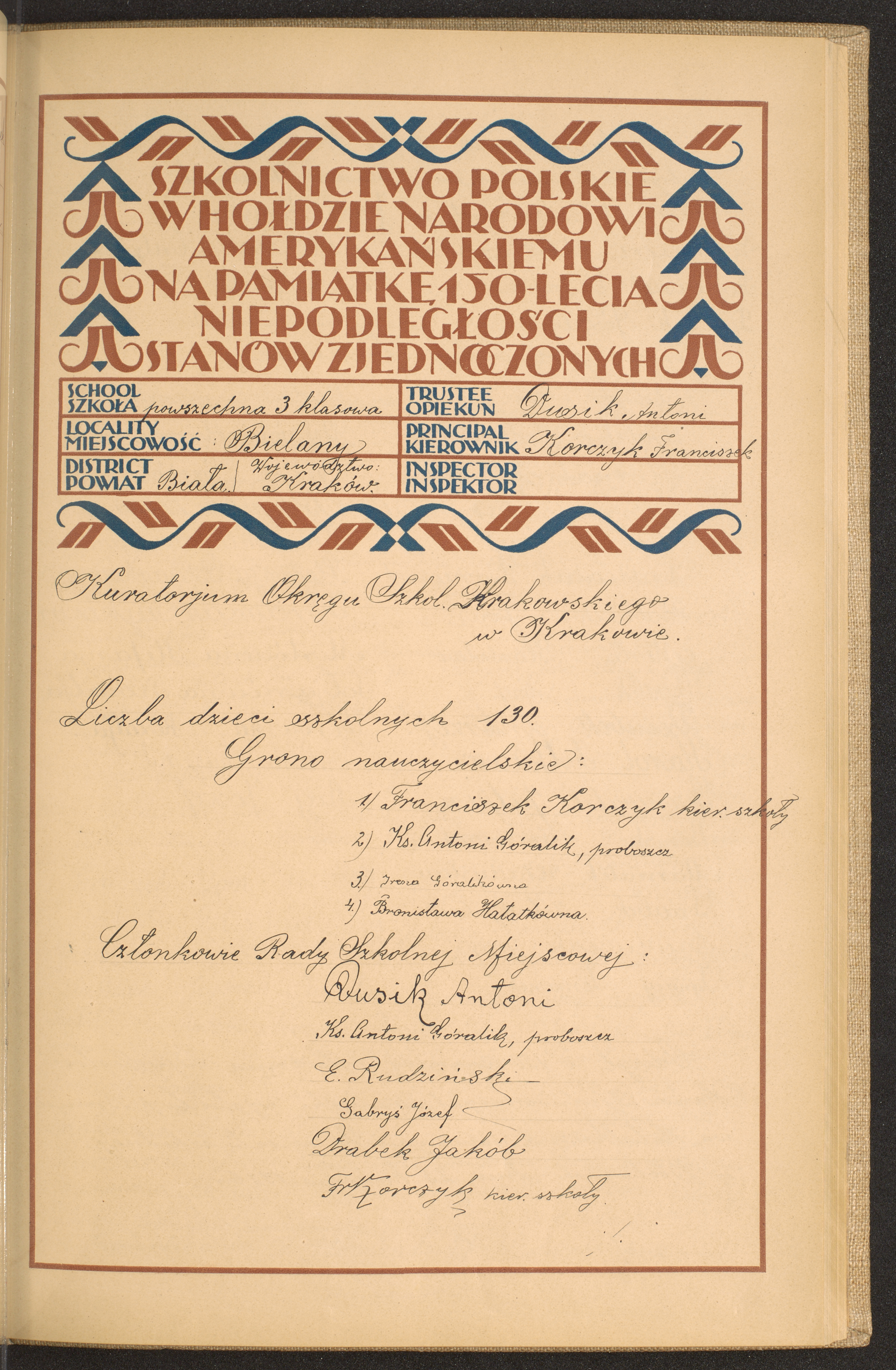 Trzyklasowa szkoła powszechna w Bielanach