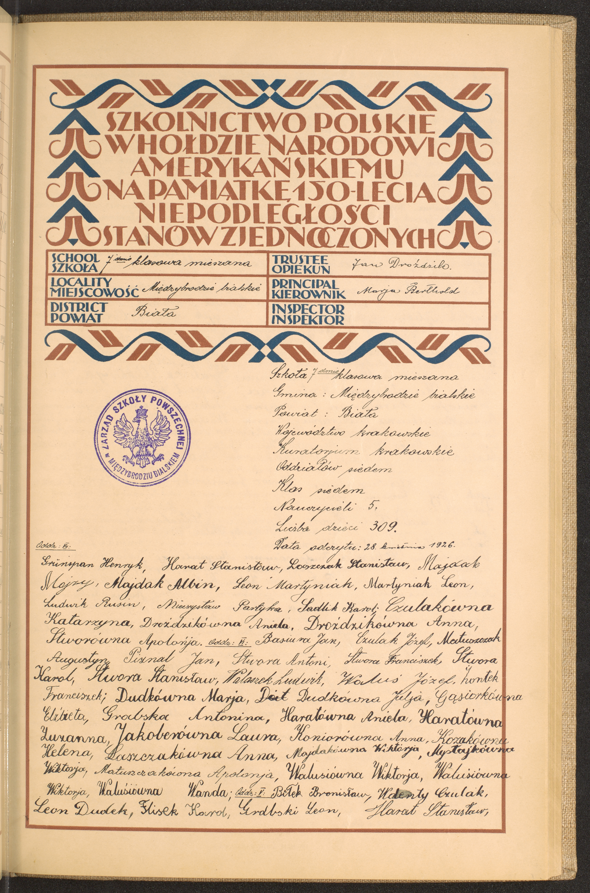 Siedmioklasowa szkoła mieszana w Międzybrodziu Bialskiem