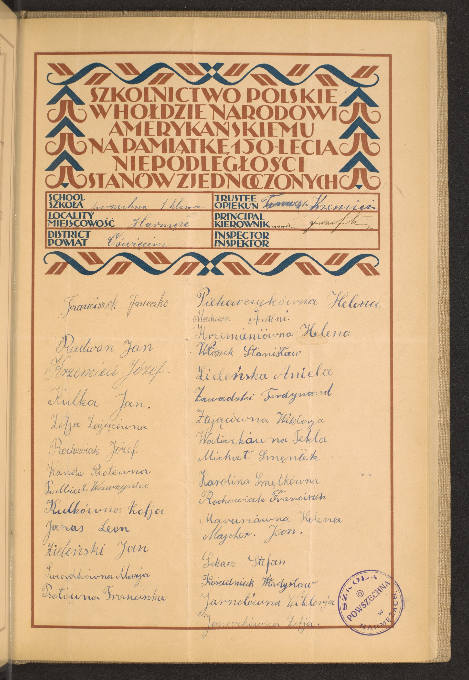 szkoły powszechne i gimnazja; powiaty Oszmiana - Pilzno