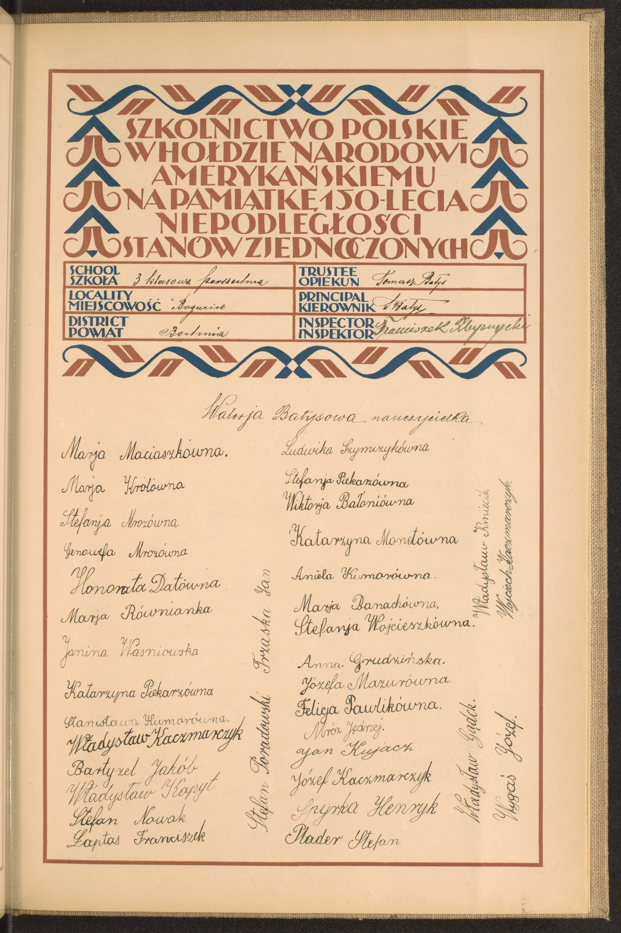 szkoły powszechne i gimnazja; powiaty Błonie - Bochnia