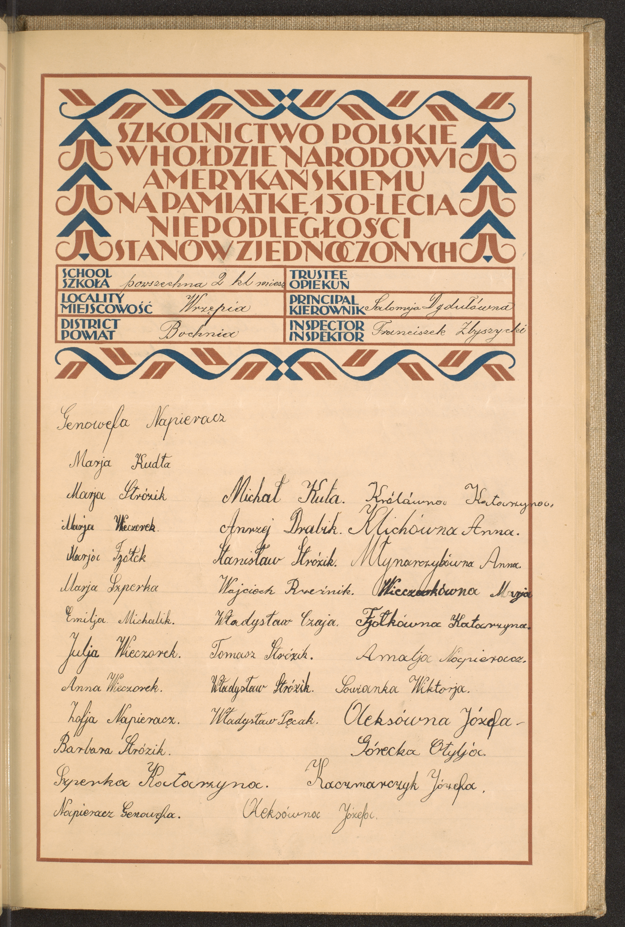 szkoły powszechne i gimnazja; powiaty Błonie - Bochnia