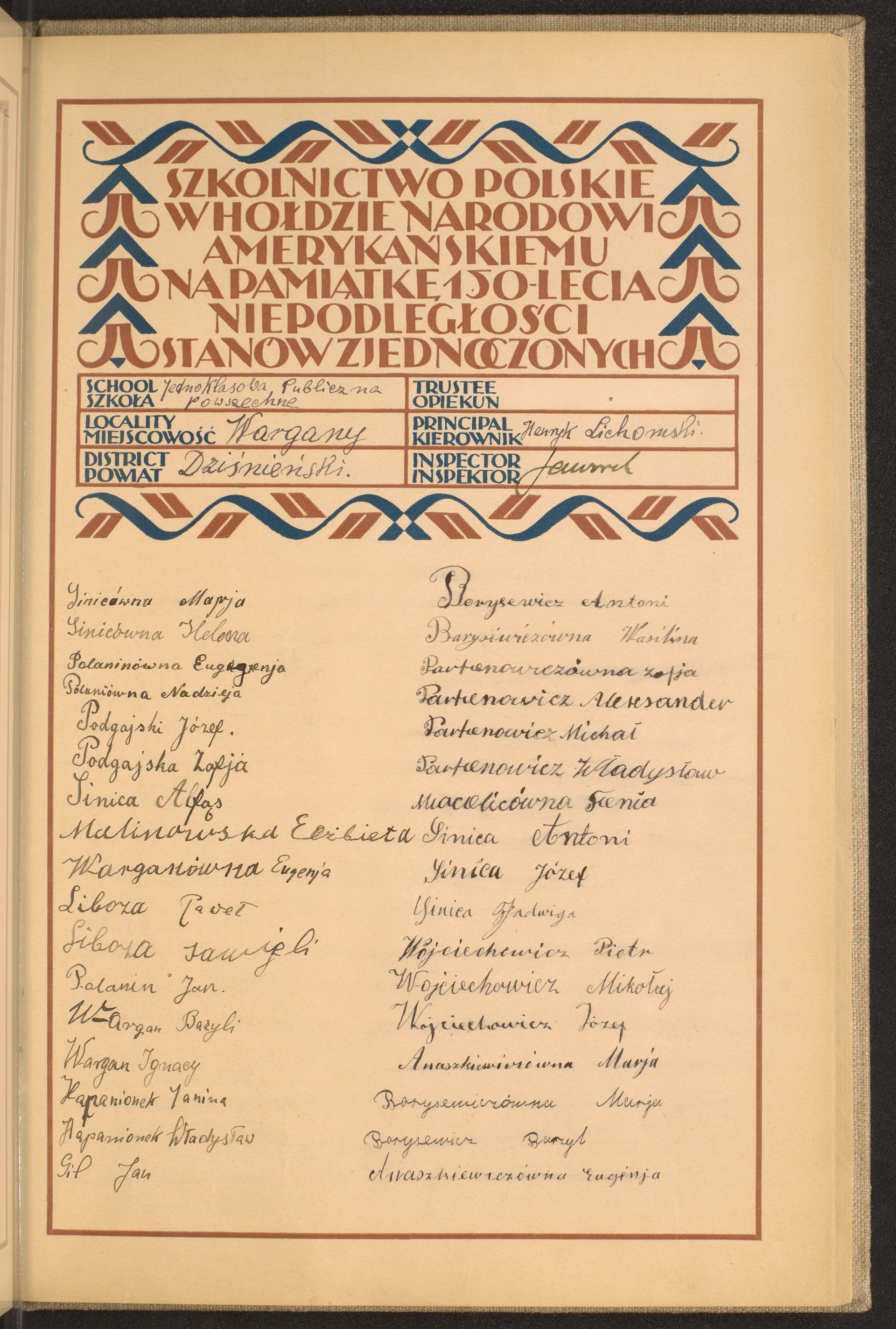 szkoły powszechne i gimnazja; powiaty Dolina-Dzisna