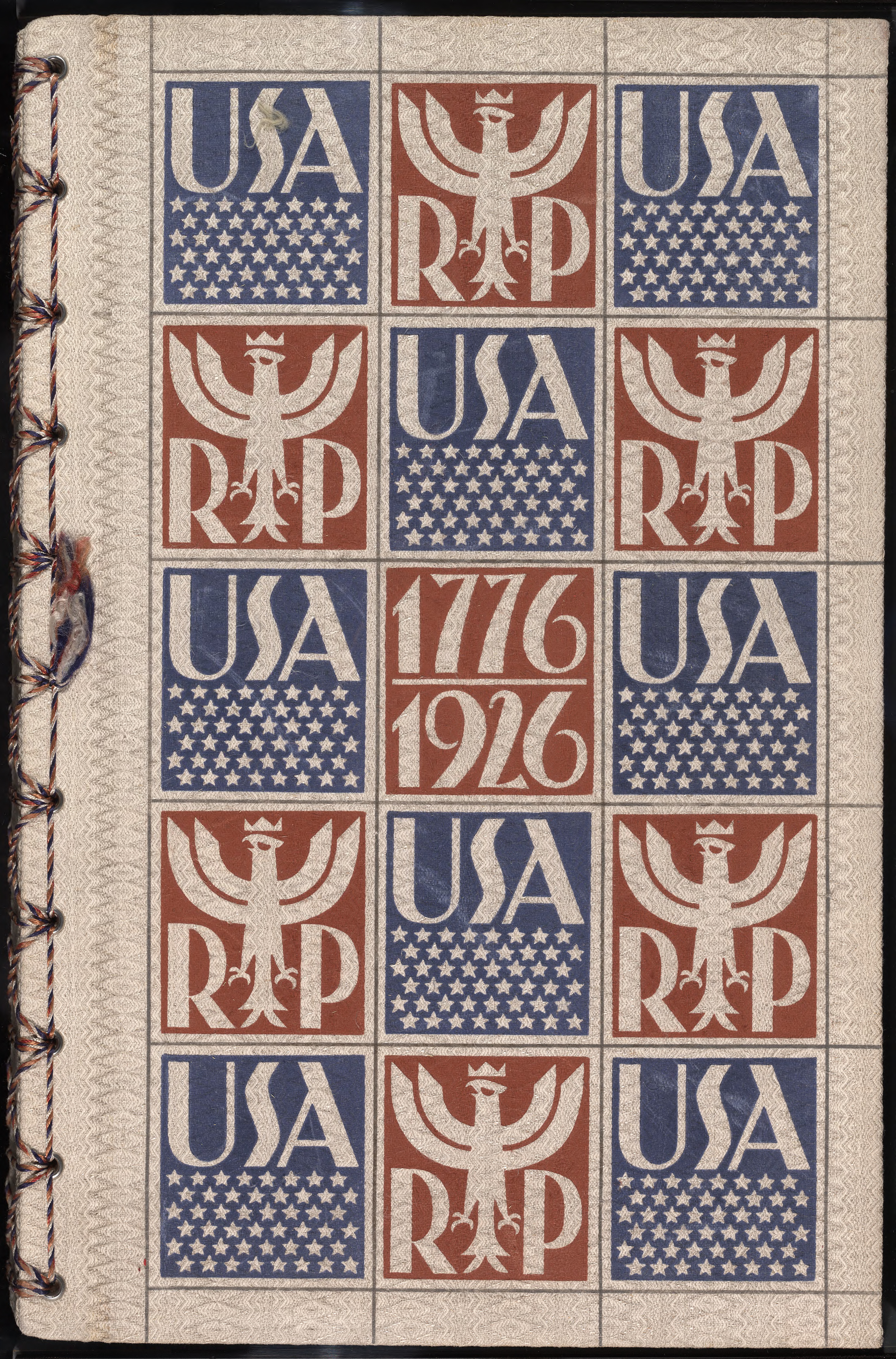 tytułowa strona; napis: "IN TOKEN TO THE AMERICAN NATION FROM THE SCHOOLS OF POLAND ON THE OCCASION OF THE 150TH ANNIVERSARY OF THE INDEPENDENCE OF THE UNITED STATES" [W DOWÓD PRZYJAŹNI DLA NARODU AMERYKAŃSKIEGO OD POLSKICH SZKÓŁ Z OKAZJI 150-LECIA NIEPODLEGŁOŚCI STANÓW ZJEDNOCZONYCH]