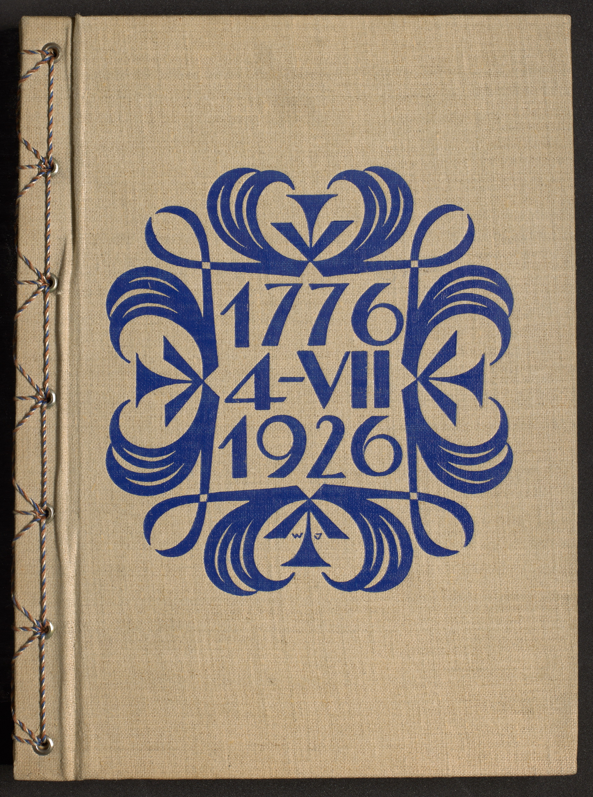 tytułowa strona; napis: "TO THE AMERICAN NATION FROM THE SCHOOLS OF POLAND" [DLA NARODU AMERYKAŃSKIEGO OD POLSKICH SZKÓŁ]